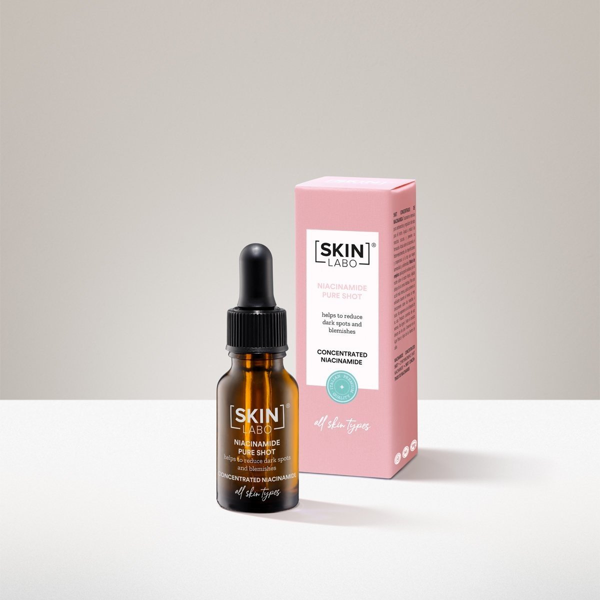 Niacinamide Pure Shot, Skinlabo: Μια καθαρή εντατική θεραπεία κατά των κηλίδων και του σμήγματος για το πρόσωπο. Βοηθά στη μείωση των σκοτεινών κηλίδων και αποτρέπει τον σχηματισμό τους. Δρα στις δυσχρωμίες, φωτογήρανση, ατέλειες και κάνει την επιδερμίδα φωτεινότερη και πιο ομοιόμορφη.