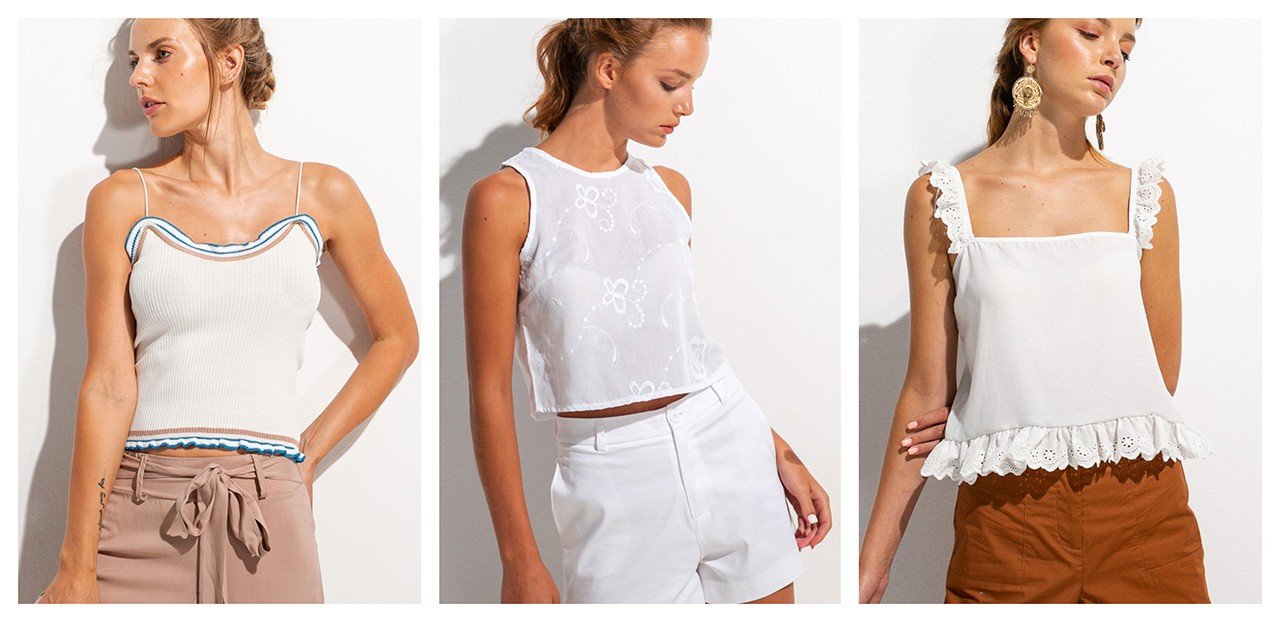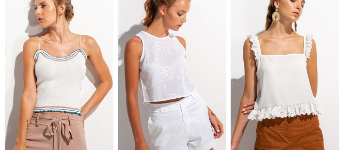 Όπως αναφέραμε παραπάνω για το μαύρο top, εξίσου απαραίτητο είναι κι ένα απλό, λευκό αμάνικο μπλουζάκι, το οποίο θα λειτουργεί σαν passé partout για όλα τα σύνολα, κυρίως τα πρωινά και απογευματινά, που θέλετε κάτι πιο χαλαρό και ανέμελο. Μην ξεχνάτε ότι, το λευκό είναι το κατάλληλο χρώμα για τις υψηλές θερμοκρασίες, αφού κρατά μακριά τις ακτίνες του ήλιου. Παράλληλα, λόγω της ουδετερότητάς του ταιριάζει άψογα με οποιαδήποτε άλλη απόχρωση, αλλά και με όλα τα μοτίβα.