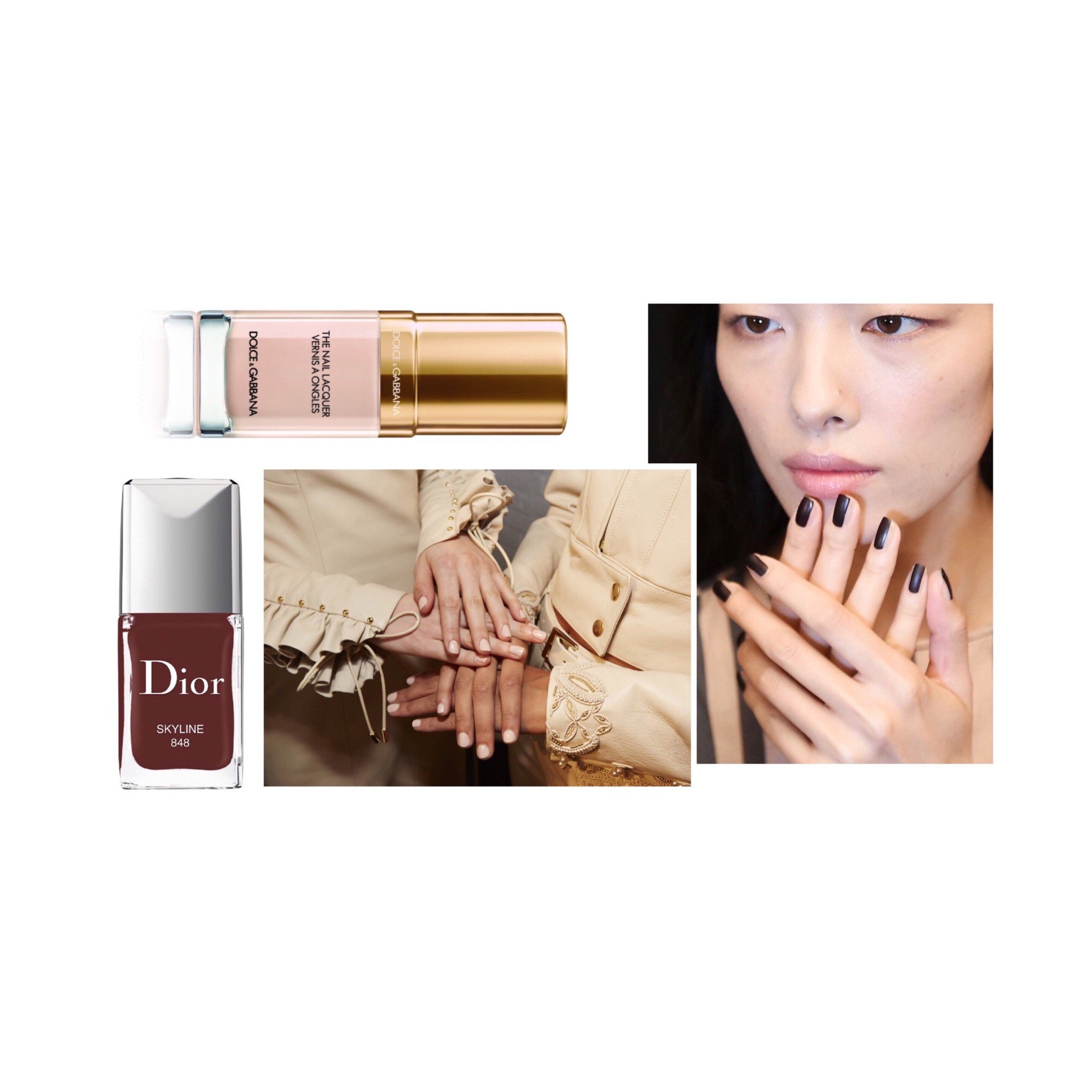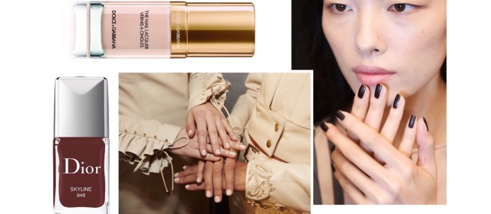 Οι απαλές και καθαρές αποχρώσεις στο χρώμα του δέρματος (Βερνίκι Pure Nude της σειράς Fall in Bloom The Nail Laquer, D&G) δεν φεύγουν ποτέ από την μόδα. Βρείτε την απόχρωση που ταιριάζει στο χρώμα της επιδερμίδας σας και κάντε τα χέρια σας να δείχνουν πιο λεπτεπίλεπτα. Η λαχταριστή σοκολατή απόχρωση (Βερνίκι Skyline της σειράς Vernis, Dior) αναδεικνύει μοναδικά τις σκουρόχρωμες επιδερμίδες και θυμίζει ζεστή σοκολάτα.