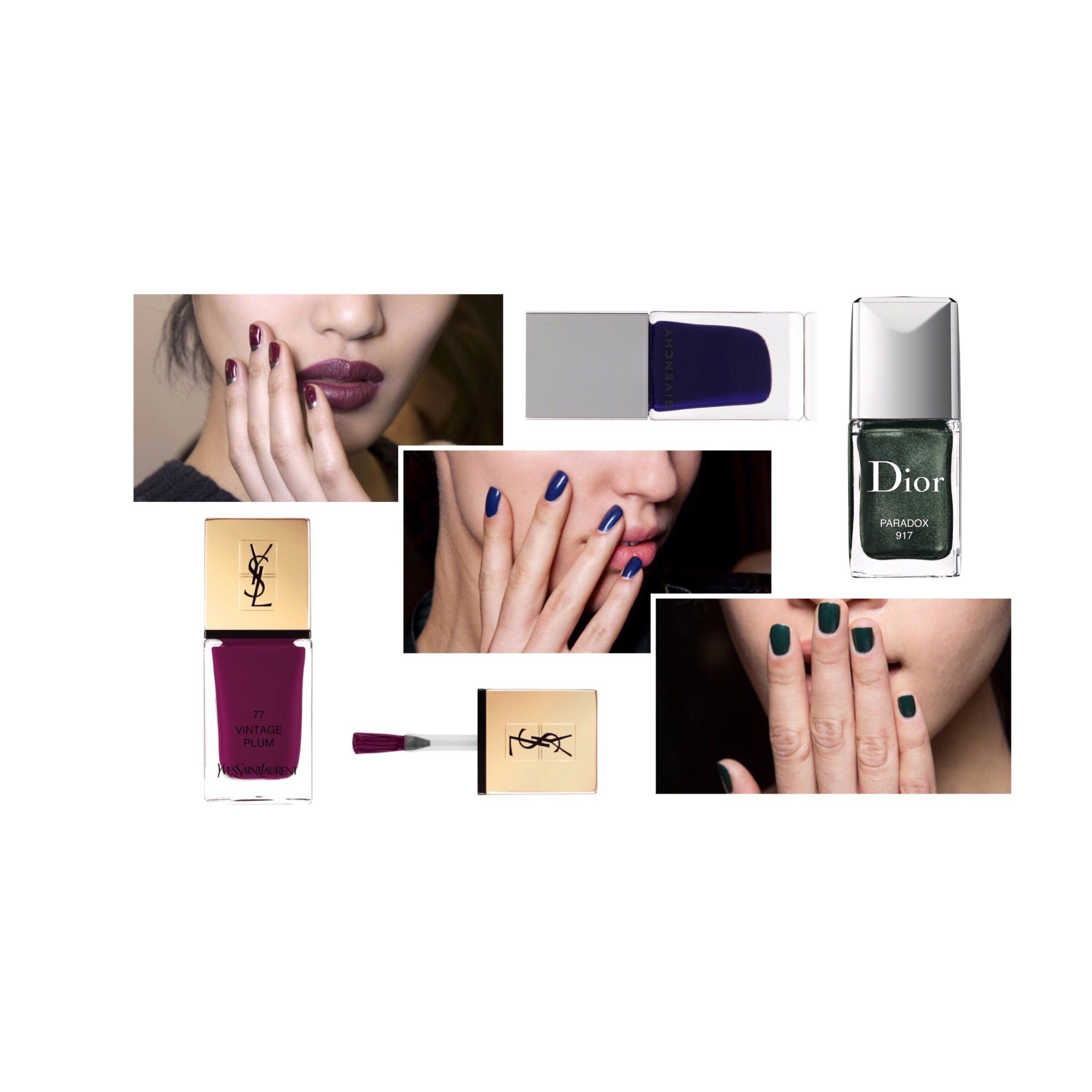 Οι μοντέρνες, εναλλακτικές προτάσεις στο μαύρο: σκούρο μπλε (Βερνίκι Batman Blue, Givenchy), πράσινο του δάσους (Βερνίκι Paradox της σειράς Dior Vernis Fall 2017 Limited Edition, Dior) και πλούσιο berry (Βερνίκι Vintage Plum της σειράς La Laque Couture, YSL). Ταιριάζουν σε όλα τα χρώματα δέρματος και σας βάζουν με τον πιο σικ τρόπο σε άκρως φθινοπωρινό mood.