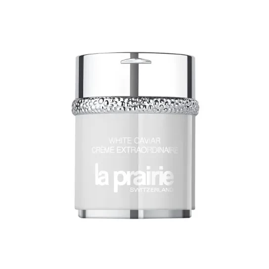 White Caviar Crème Extraordinaire, La Prairie: Η White Caviar Crème Extraordinaire είναι μια πλούσια κρέμα ενυδάτωσης και σύσφιξης προσώπου, εμπλουτισμένη με το ισχυρότερο, έως σήμερα, ενεργό συστατικό φωτεινότητας που υπάρχει, ώστε να καταπολεμήσει την εμφάνιση δυσχρωμιών και κηλίδων γήρανσης.