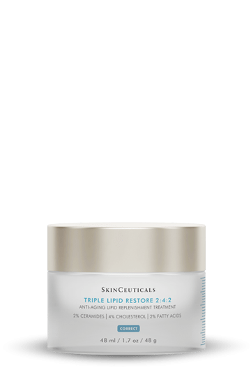 Triple Lipid Restore 2:4:2, Skinceuticals: Η ώριμη επιδερμίδα κινδυνεύει από αυξανόμενη μείωση των κυτταρικών λιπιδίων: ceramides, φυσική χοληστερόλη και λιπαρά οξέα. Η απώλεια των λιπιδίων απειλεί τον φυσικό επιδερμιδικό φραγμό που έχει ως αποτέλεσμα τα ορατά αποτελέσματα της γήρανσης, καθώς το δέρμα χάνει την ικανότητα να αυτό-επιδιορθώνεται αποτελεσματικά. Το Triple Lipid Restore 2:4:2 είναι μια αντιγηραντική κρέμα που συνδυάζει μια μεγιστοποιημένη συγκέντρωση λιπιδίων