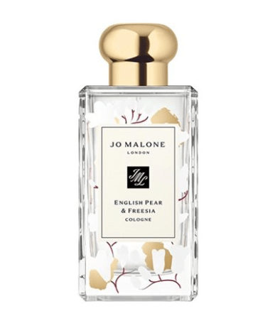 English Pear & Freesia Cologne Limited Edition, Jo Malone London: Γλυκά αχλάδια τυλιγμένα σε ένα μπουκέτο από λευκές φρέζιες, σε συνδυασμό με άγρια τριαντάφυλλα, ζεστό κεχριμπάρι, πατσουλί και ξύλο σε συλλεκτικό μπουκάλι.