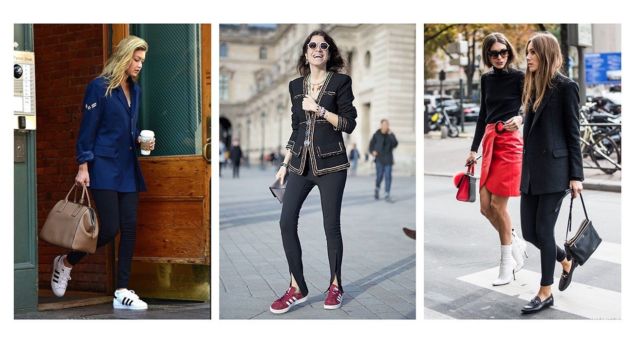 Φτιάξτε ένα σύνολο αντιθέσεων συνδυάζοντας το casual κολάν σας μαζί με ένα κομψό σακάκι για ένα high fashion look που θα σας χαρίσει τον αέρα μίας αληθινής street style star. Η Leandra Medine -aka The Man Repeller- μας δίνει ένα πολύ σωστό παράδειγμα, ολοκληρώνοντας την εμφάνισή της με sneakers. Το μόνο που πρέπει να προσέξετε στο συγκεκριμένο look είναι το μήκος του σακακιού το οποίο δε πρέπει να είναι πάρα πολύ κοντό για να μη φαίνονται εντελώς οι γλουτοί σας. Δοκιμάστε το για το γραφείο και για βόλτες στη πόλη, ενώ μπορείτε να το φορέσετε και με loafers ή slides.