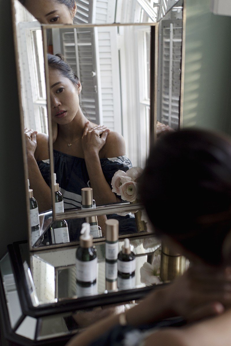 Στο ίδιο μοτίβο κινείται και η ρουτίνα ομορφιάς της, όταν ταξιδεύει. Η carry-on beauty τσάντα της είναι γεμάτη προϊόντα περιποίησης, ενώ δεν λείπουν μερικά καλλυντικά. Το νεσεσέρ του αεροπλάνου της παρέχει την ενυδάτωση και την χαλάρωση που χρειάζεται on the go. Προτιμά να μην φοράει καθόλου makeup στο ταξίδι, ενώ μόλις προσγειωθεί φροντίζει να γεμίζει τα φρύδια της, να γυρίζει τις βλεφαρίδες της με το ειδικό ψαλίδι και να βάφει τα χείλη της.