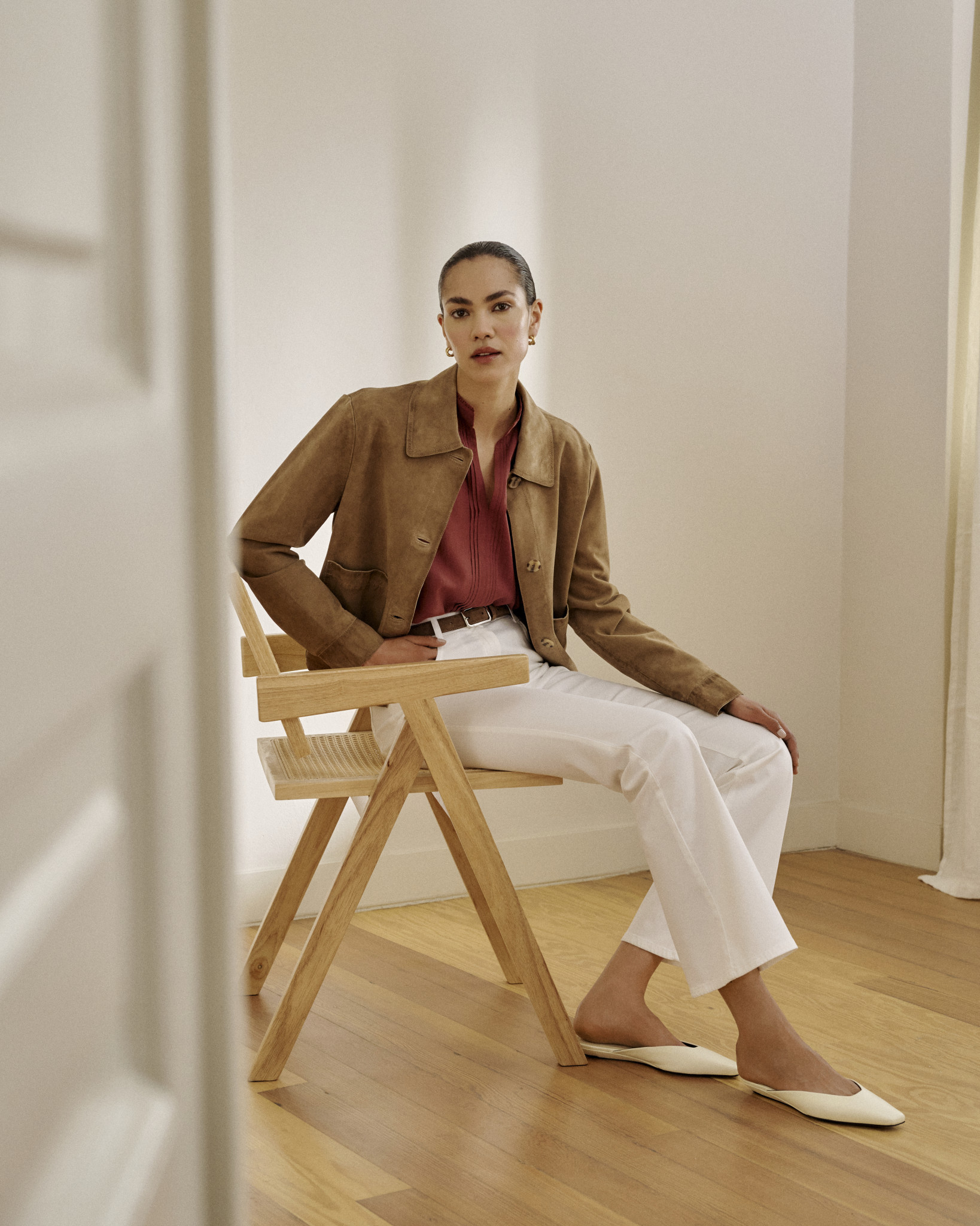 Τα υλικά παίζουν καθοριστικό ρόλο στη συνολική αίσθηση της συλλογής. Suede jackets που φέρνουν μια απαλή, σχεδόν tactile διάσταση, λινά σύνολα που συνδέονται άμεσα με την καλοκαιρινή ανεμελιά, cotton blends που προσφέρουν καθημερινή λειτουργικότητα και μεταξωτές υφές που προσθέτουν μια διακριτική πολυτέλεια. Οι επιλογές δεν είναι τυχαίες, αντιθέτως έχουν λόγο ύπαρξης.