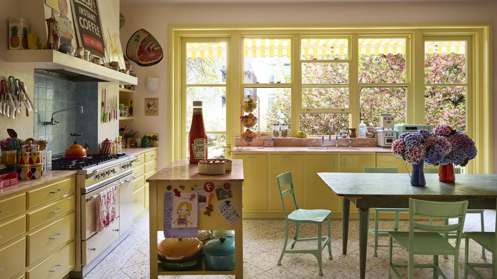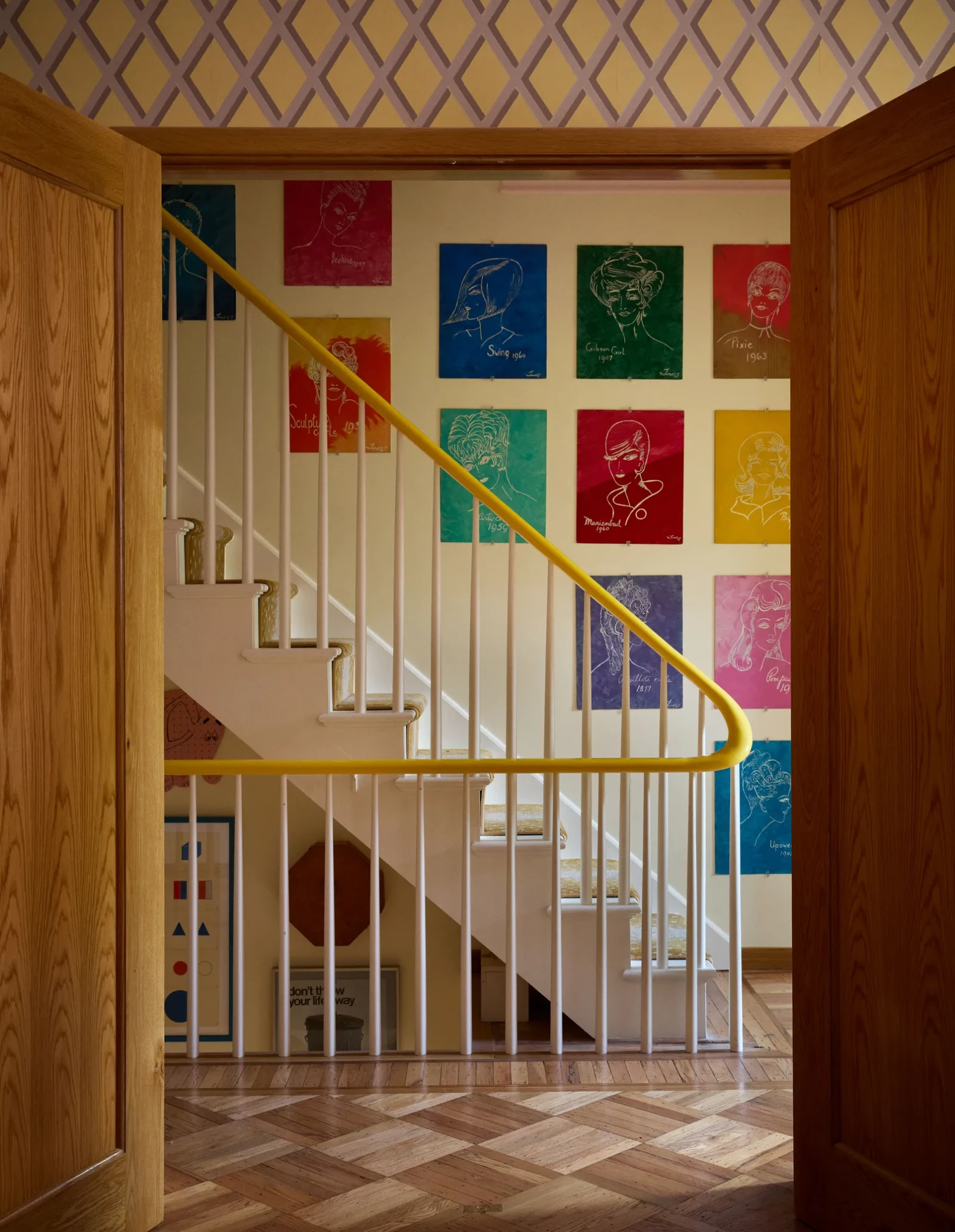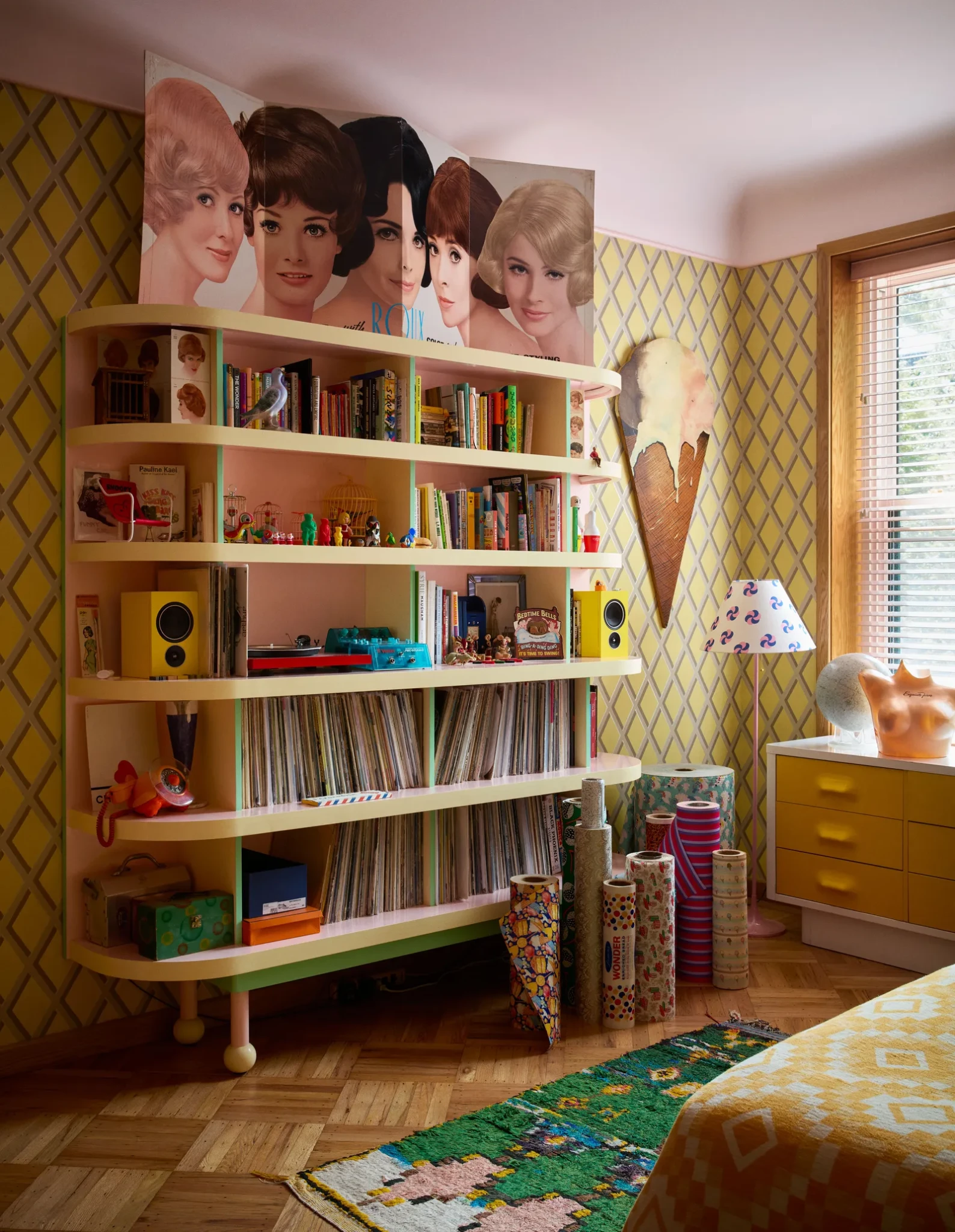 Το σπίτι θυμίζει έναν ψυχεδελικό κόσμο γεμάτο εκπλήξεις. Μία φωτεινή κίτρινη τσουλήθρα συνδέει την κουζίνα με τον κήπο, δημιουργώντας μια αίσθηση παιχνιδιού που υπερβαίνει τα όρια του κλασικού σπιτιού. Η τραπεζαρία καλύπτεται από βελούδινο κίτρινο ύφασμα και κοσμείται με συλλογή παλιών κουμπιών, ενώ ένας μυστικός διάδρομος οδηγεί από την αποθήκη στην είσοδο και κρύβει μια καμπίνα για DJ. Οι τοίχοι του σαλονιού ντύνονται με μεταξωτές ταπετσαρίες που απεικονίζουν θαλασσινά τοπία, προσδίδοντας πολυτέλεια και παραμυθένια διάθεση. Στην ημικυκλική ντουλάπα, ο Mr. Peanut παρατηρεί διακριτικά, ενώ μια διπλή σειρά vintage ρούχων σχηματίζει ένα εντυπωσιακό ουράνιο τόξο, μετατρέποντας τον χώρο σε ένα ζωντανό θέαμα.