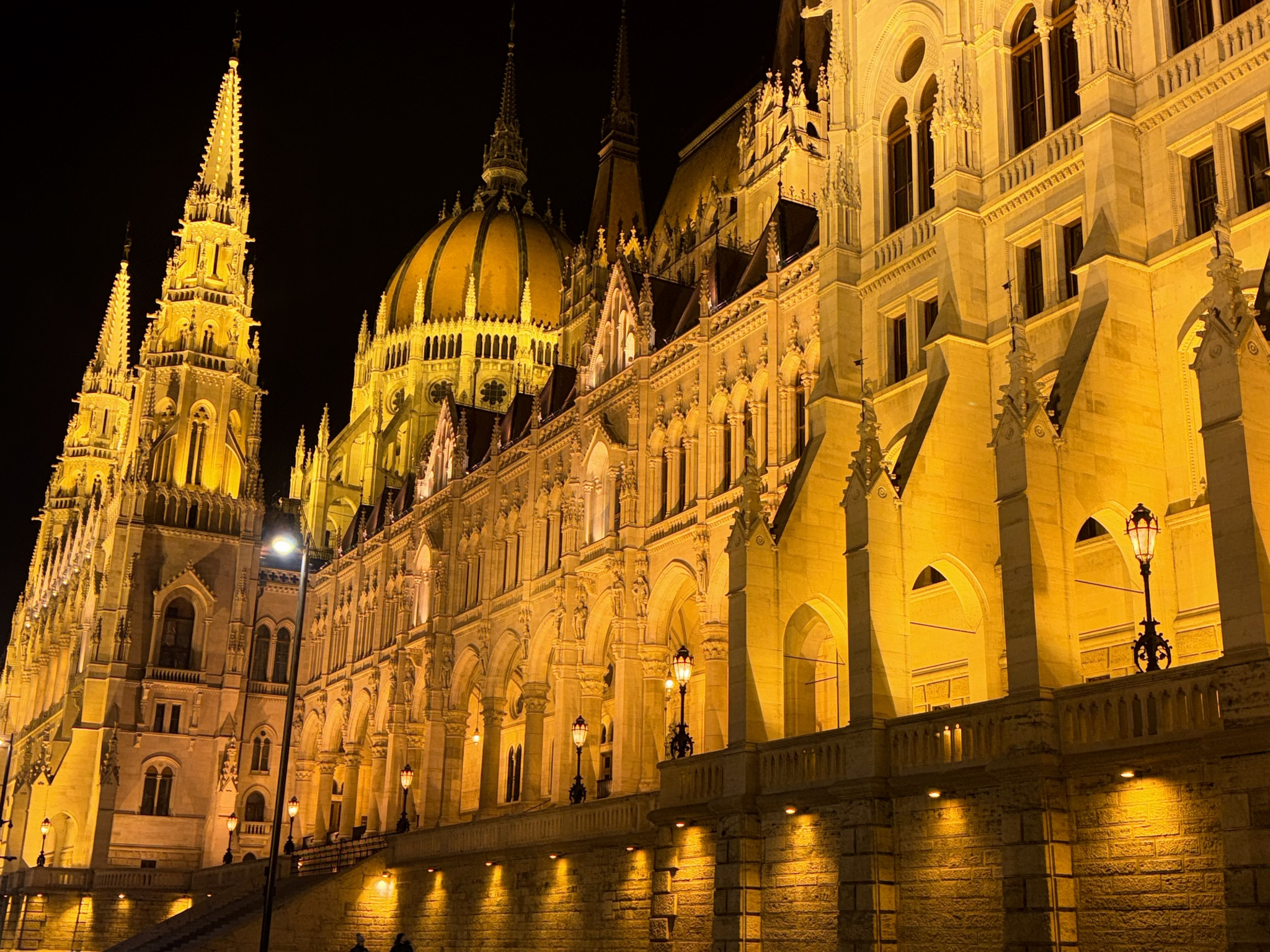 Έτσι, επιλέξαμε ένα παγκάκι μπροστά από το φωτισμένο στολίδι της Βουδαπέστης, το επιβλητικό Κοινοβούλιο, και καθίσαμε να απολαύσουμε το κρασί μας, βλέποντας ολόκληρη τη νυχτερινή πόλη να απλώνεται μπροστά μας. Η γέφυρα, το κάστρο της Βούδας, το ποτάμι που γυάλιζε από τα φώτα, και ο κόσμος που περνούσε δημιουργούσαν ένα σκηνικό σχεδόν κινηματογραφικό. Για εμάς προσωπικά, είναι ο πιο όμορφος τρόπος να απομακρυνόμαστε από τους έντονους ρυθμούς της καθημερινότητας και να θυμόμαστε πόση ομορφιά κρύβει ο κόσμος, όταν βρίσκεις να τον κοιτάξεις με ηρεμία.