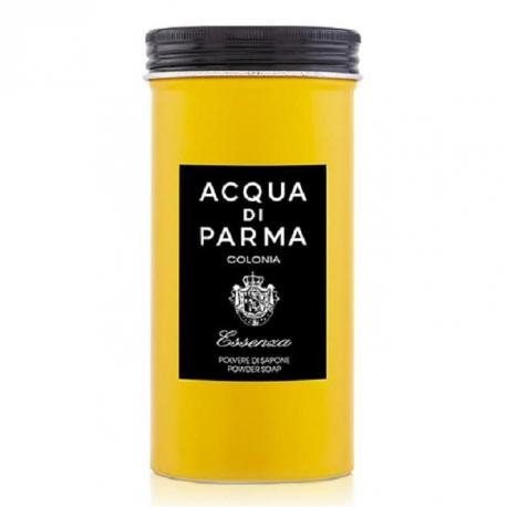 Colonia Essenza Powder Soap, Acqua di Parma: Ένα καινοτόμο, ελαφρύ και μεταξένιο σαπούνι σε μορφή πούδρας, που δημιουργεί έναν πλούσιο, βελούδινο αφρό κατά την επαφή του με το νερό για να καθαρίσει απαλά την επιδερμίδα. Η συσκευασία του -κομψό, μεταλλικό δοχείο- θυμίζει τις κλασικές συσκευασίες του ταλκ από το παρελθόν, με το χαρακτηριστικό λαμπερό κίτρινο της Acqua di Parma και απίστευτες ξυλώδεις νότες.