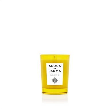 Buongiorno Candle, Acqua di Parma: Ένα φρέσκο ξύπνημα για να ξεκινήσει η ημέρα σας. Καθώς οι πρώτες ακτίνες του ήλιου έρχονται από το παράθυρο και φωτίζουν απαλά τον χώρο, το συνοδευτικό αεράκι φέρνει πράσινες νότες φύσης που θυμίζουν την υπέροχη ιταλική ύπαιθρο.