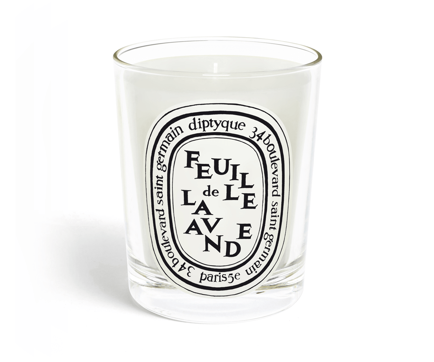Feuille de Lavande Scented Candle, Diptyque: Αρωματικό κερί χώρου με νότες από φύλλα λεβάντας, που δημιουργούν ένα λουλουδάτο άρωμα που κάνει τον χώρο να αποπνέει φρεσκάδα και γοητεία.