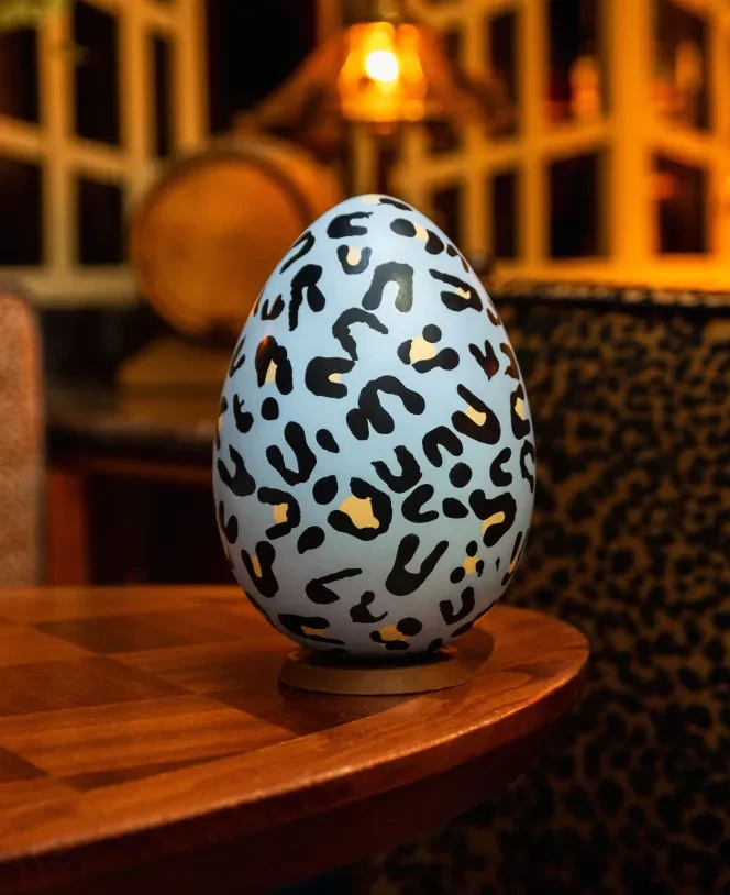 Μεταφράζοντας το όνομά του ως «Λεοπάρδαλη», το Il Gattopardo, το retro-inspired ιταλικό εστιατόριο στην καρδιά του Mayfair, ξεχωρίζει για τα τολμηρά και λαμπερά του εσωτερικά. Ο pastry chef Galileo Reposo δημιούργησε ένα εντυπωσιακό πασχαλινό αυγό με στίγματα, φτιαγμένο από σοκολάτα γάλακτος με υψηλή περιεκτικότητα σε κακάο, που λιώνει απαλά στο στόμα και προσφέρει μια γλυκιά, βελούδινη απόλαυση. Σπάζοντας το σκληρό κέλυφος, αποκαλύπτονται μικρές πέρλες από καραμελωμένη σοκολάτα, κρυμμένες στο εσωτερικό, προσφέροντας μια έκπληξη που ενθουσιάζει κάθε λάτρη της σοκολάτας.