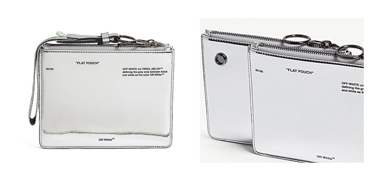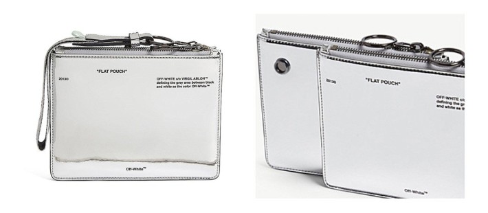 Εάν έπρεπε να επιλέξουμε την απόχρωση που είναι ταυτόσημη με το φουτουριστικό space style, τότε αυτή δε θα μπορούσε να είναι άλλη από την ασημί. Η Off White έρχεται με ένα ολοκαίνουριο και φρέσκο mirror pouch σε ορθογώνιο σχήμα από μεταλλικό ύφασμα, στο οποίο μπορείτε και να καθρεφτιστείτε! Ουσιαστικά πρόκειται για δύο αποσπώμενα κομμάτια ενωμένα με κουμπάκια. Φέρει ένα belt-style wristler για να μπορείτε να το κουβαλάτε άνετα και με χάρη, κρατώντας το από τον καρπό σας. Χωράει όλα σας τα απαραίτητα από τα κλειδιά, το κινητό μέχρι τα λεφτά σας και ταιριάζει με τα πάντα. Μπορεί να χρησιμοποιηθεί ακόμα και σαν πορτοφόλι ή make up case.