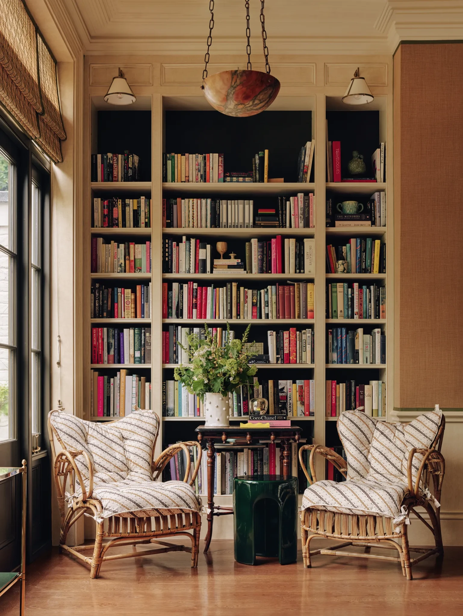 Ο φωτισμός επίσης παίζει καθοριστικό ρόλο. Το ζεστό και απαλό φως δημιουργεί ατμόσφαιρα και αναδεικνύει τις υφές των βιβλίων, μετατρέποντας τον χώρο σε ένα φιλόξενο περιβάλλον που προσκαλεί σε στιγμές χαλάρωσης και ησυχίας.