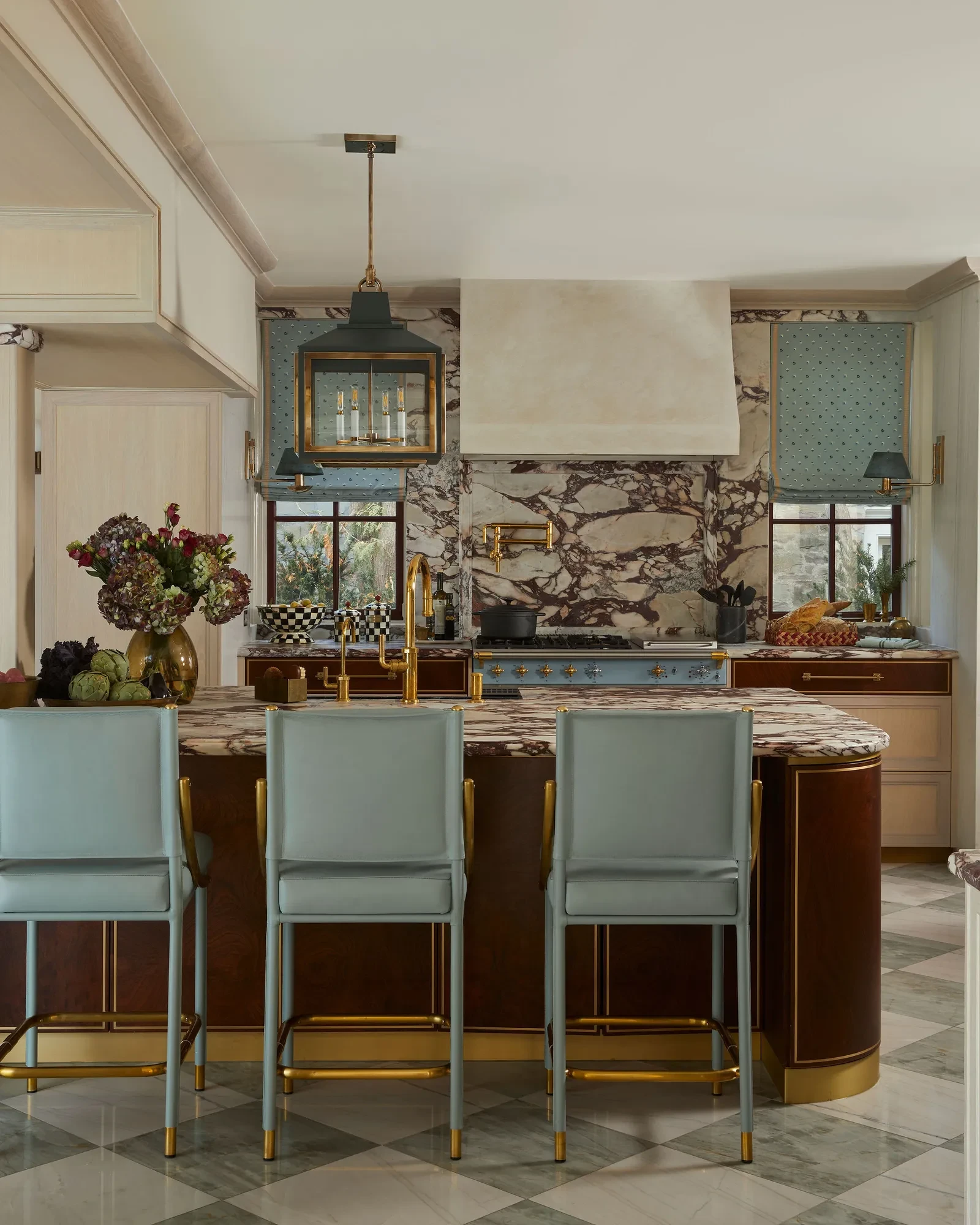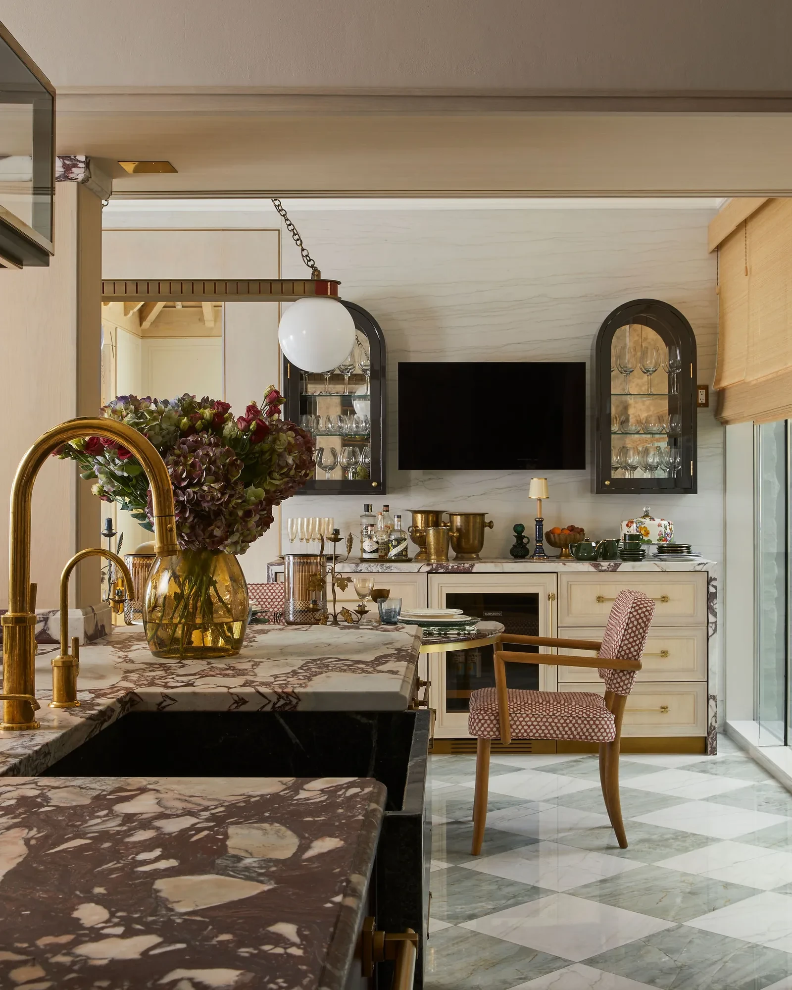 Σπάνια είδη ξύλου, εκλεπτυσμένα φινιρίσματα, τέλεια διακοσμητικά στοιχεία και custom made παραγγελίες απαιτούσαν χρόνο για να επιτευχθεί ένα τέλειο αποτέλεσμα. Τα εμπριμέ υφάσματα έκαναν το vintage στοιχείο πιο έντονο, ενώ ο συνδυασμός των βελούδων, των λινών και των μεταξωτών προσφέρουν μια απαλότητα στο σπίτι. Σύμφωνα με την Albanese: «Αυτές οι λεπτομέρειες κάνουν περισσότερα από το να στολίζουν· ζωντανεύουν τα δωμάτια. Κάθε ύφασμα και διακοσμητικό στοιχείο φέρει την ιστορία της οικογένειας και τη δική του αίσθηση χαράς του σπιτιού».