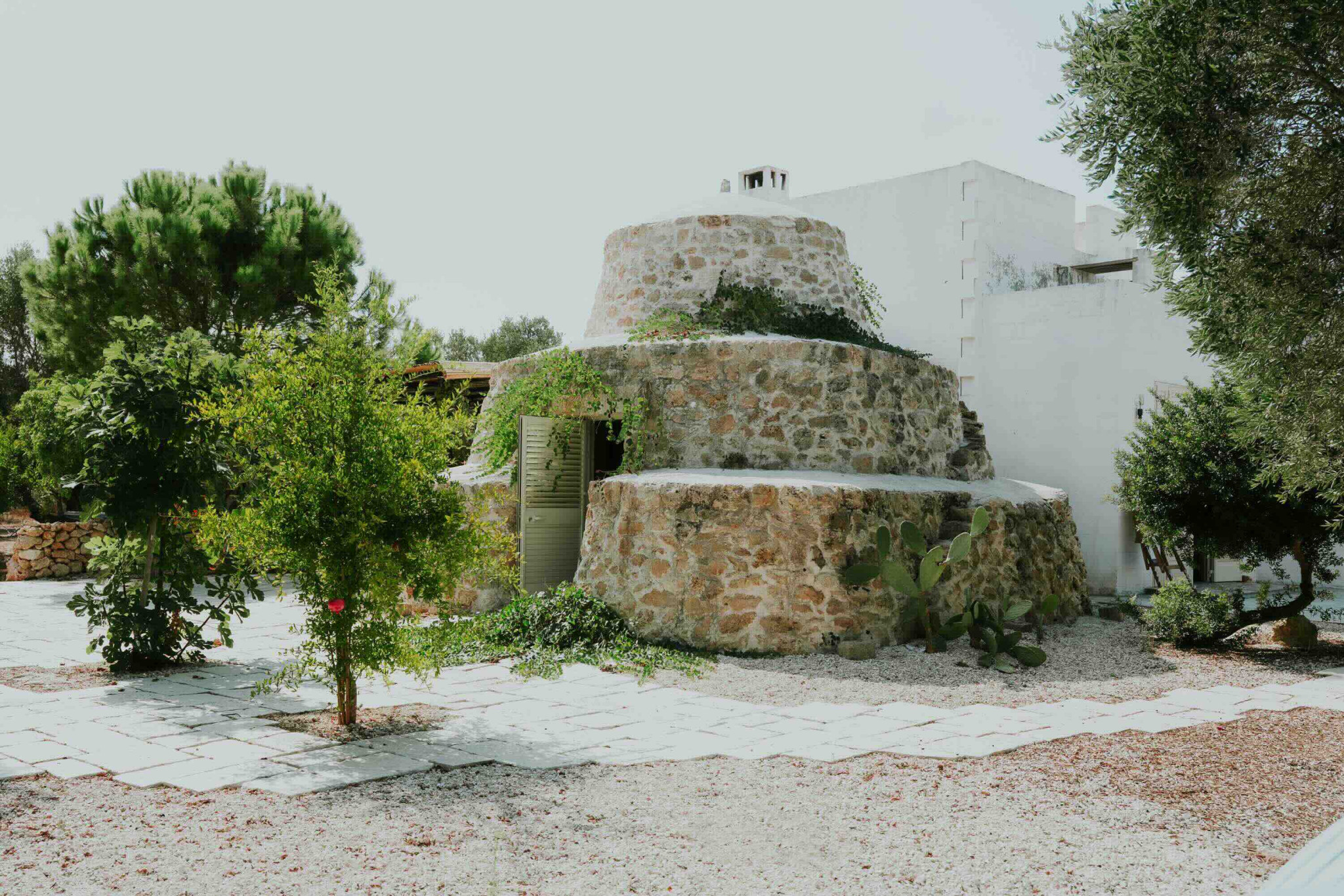 Κρυμμένο μέσα στους κυματιστούς λόφους της Απουλίας, περιτριγυρισμένο από έναν εκτεταμένο μεσογειακό κήπο με ελαιόδεντρα, συκιές και αμυγδαλιές, βρίσκεται το Corni di Fiasco. Πρόκειται για ένα ατμοσφαιρικό καταφύγιο που ξεφεύγει από τις κατοικίες που συναντάμε στη νότια Ιταλία, μόλις λίγα λεπτά από τις παραλίες και τους ήσυχους όρμους του Ιονίου Πελάγους, καθώς και από το μικρό, αυθεντικό χωριό Maruggio. Εκεί, η καθημερινότητα απομακρύνεται από τον θόρυβο και την ένταση της σύγχρονης ζωής και επανασυνδέεται με τον φυσικό ρυθμό του τοπίου και των εποχών.