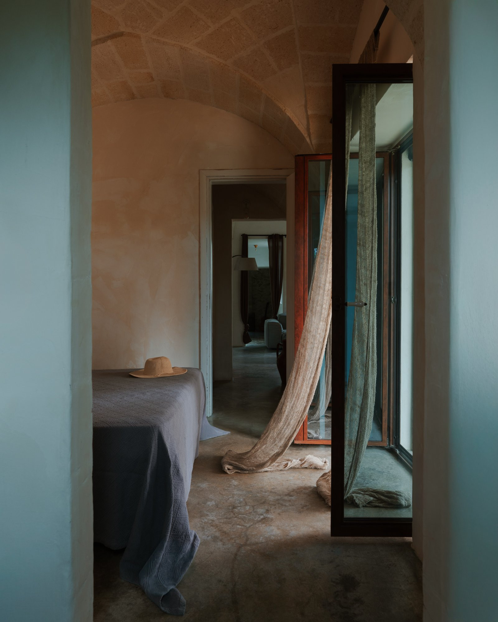 Ενώ το εξωτερικό του συγκροτήματος διατηρεί μια λιτή και καθαρόγραμμη αισθητική, το εσωτερικό αποκαλύπτει πλούσια αρχιτεκτονικά στοιχεία: επιβλητικές θολωτές οροφές, αυθεντικές δομές και ενδιαφέρουσες μεταβάσεις μεταξύ υλικών που αφηγούνται την ιστορία της κατασκευής. Ο σχεδιασμός αποφεύγει επιδεικτικές παρεμβάσεις, επιλέγοντας μια διακριτική σύνθεση λιτότητας, αυθεντικότητας και σύγχρονης άνεσης.