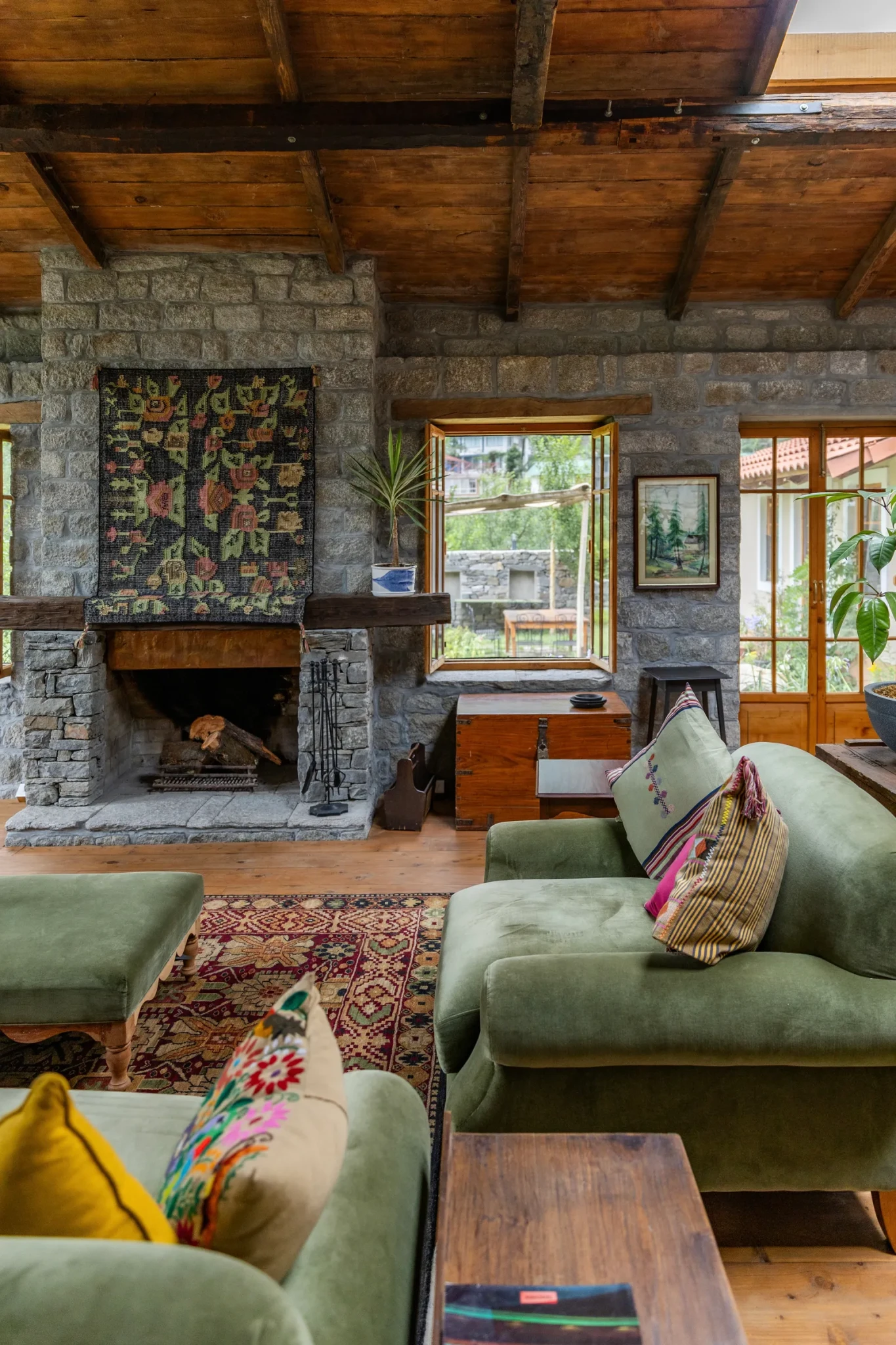 Οι ιδιοκτήτες, η Jaya, ο Veer και η Nikita Chatrath, σχεδίασαν και κατασκεύασαν το σπίτι μόνοι τους, χωρίς αρχιτέκτονα, με τη χρήση τοπικών υλικών όπως πέτρα, ξύλο και σχιστόλιθο. Κάθε λεπτομέρεια αντικατοπτρίζει την προσωπική τους αισθητική και την φιλοσοφία τους για απλότητα και λειτουργικότητα.