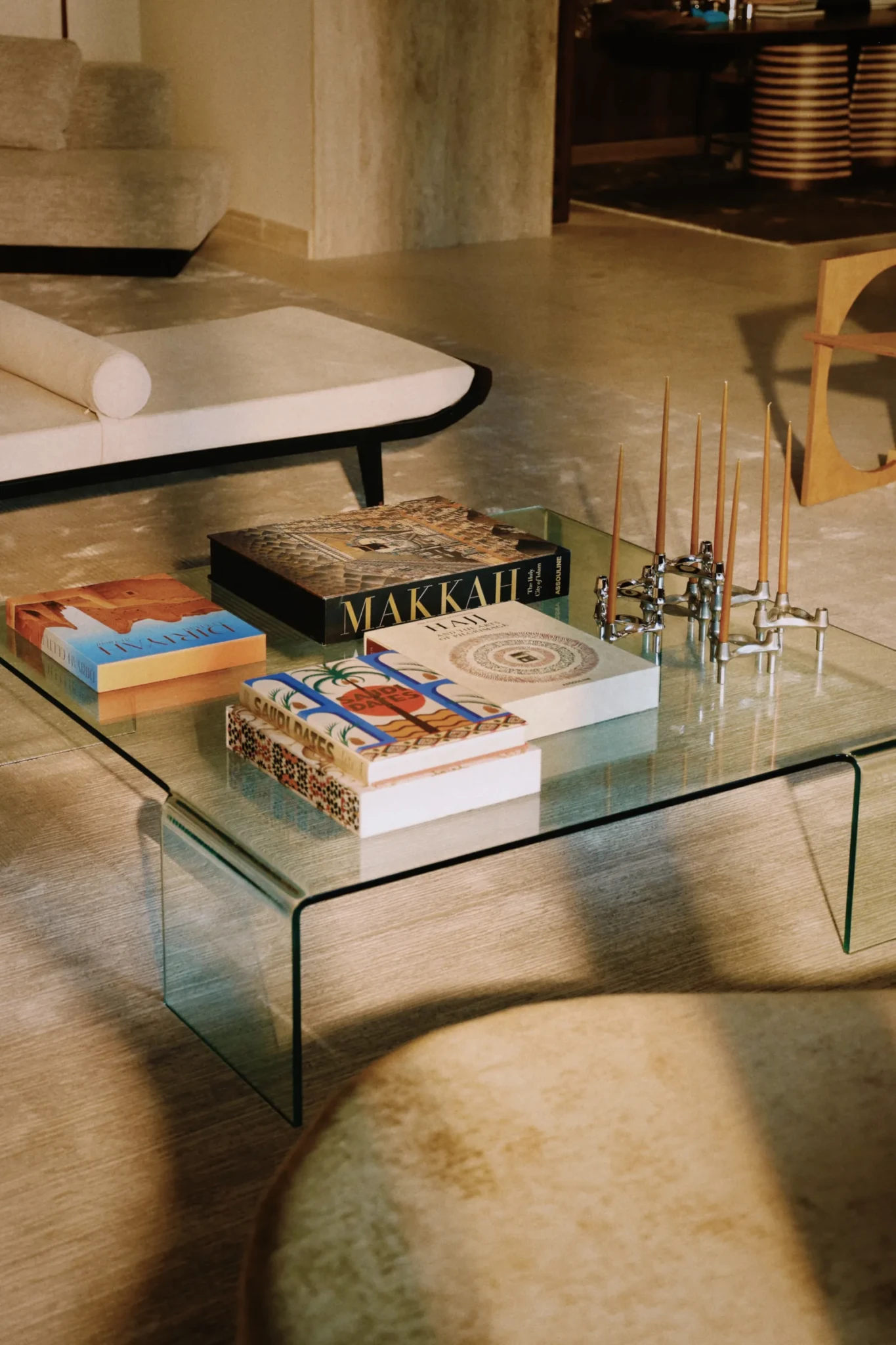 Η τετράκλινη κατοικία σχεδιάστηκε από τον αρχιτέκτονα Elie Riachi, που μοιράζει τον χρόνο του ανάμεσα στη Βηρυτό και το Λονδίνο, για έναν μεγιστάνα του πετρελαίου. Πρόκειται για το αστικό του καταφύγιο, ένα pied-à-terre για τις στιγμές που επιστρέφει στην πόλη. Με αγάπη για τον σχεδιασμό και με μια πλούσια συλλογή έργων τέχνης από καλλιτέχνες της περιοχής, ο ιδιοκτήτης ζήτησε μια ανανέωση: όχι αλλαγή δομής, αλλά μια ουσιαστική «αισθητική ανάσα». Τα παλιά στοιχεία απομακρύνθηκαν, οι χαμηλές ψευδοροφές αποσύρθηκαν, ενώ τα δάπεδα από ασβεστόλιθο διατηρήθηκαν ως ένα διαχρονικό υπόβαθρο.