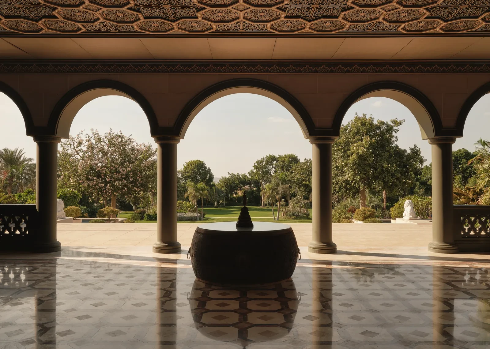 Η έπαυλη που μεταμορφώθηκε από την El Tanani προσφέρει μια εντυπωσιακή οπτική εμπειρία, συνδυάζοντας την ελληνική, ασιατική, περσική και ευρωπαϊκή αισθητική με την αιγυπτιακή παράδοση, δημιουργώντας έναν χώρο που είναι ταυτόχρονα παλιός και σύγχρονος.