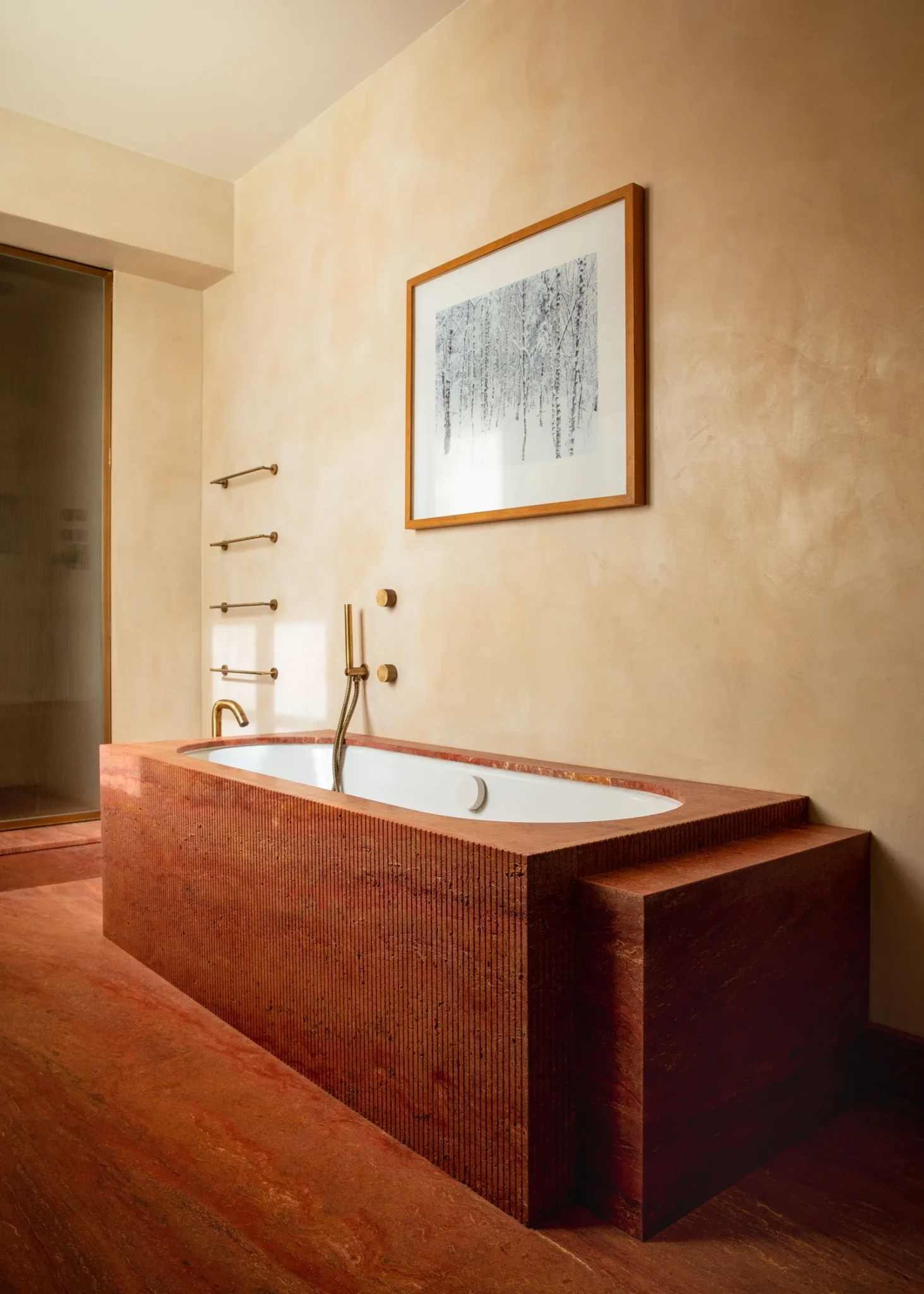 Στην κορυφή ενός Art Deco κτιρίου της δεκαετίας του 1930, στην rue Chomel, ξεδιπλώνεται ένα παριζιάνικο διαμέρισμα που αντλεί την έμπνευσή του από την τέχνη. Απέναντι από το ιστορικό Le Bon Marché, αυτό το τριών υπνοδωματίων σπίτι σχεδιάστηκε για μια συγγραφέα και συλλέκτρια έργων τέχνης, με βασική πηγή έμπνευσης ένα πορτρέτο του Γκούσταβ Κλιμτ: τη «Φρίτσα Ρίντλερ» του 1906. Όπως και στο έργο του ζωγράφου, έτσι κι εδώ, ο άνθρωπος και ο χώρος μοιάζουν σαν «ένα».