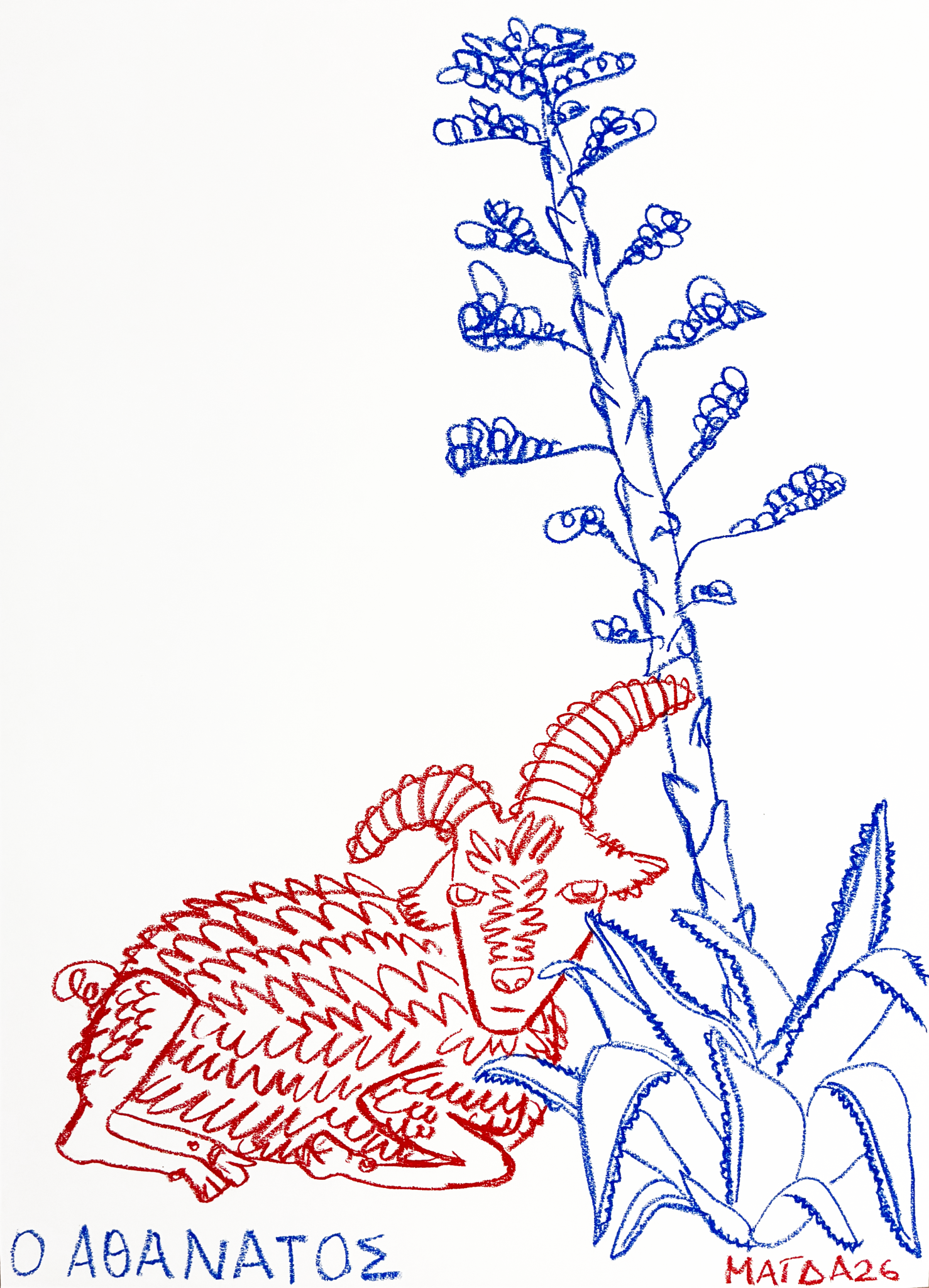 Είναι μια ωδή στην ξενιτιά και στην κατσίκα. Την παρουσιάζω στην γκαλερί APODEC, στη Θεσσαλονίκη. Προέκυψε κάπως τυχαία όταν έστειλα ένα μήνυμα στην Τένια, την επιμελήτρια, και προς έκπληξή μου, ενώ δεν είχαμε ξαναμιλήσει, μου απάντησε, «τώρα σε σκεφτόμουν». Ταιριάξαμε κατευθείαν, ο χώρος της γκαλερί της είναι μικρός και με παραπέμπει σε μια μικρή φωλιά, ένα σπιτάκι για την κατσίκα μου, κάτι που τόσα χρόνια αναζητά. Αποτελεί αποκορύφωση ενός project που ξεκίνησε όταν μετανάστευσα στην Αμερική και συνέχισε όταν πρωτοεγκαταστάθηκα στην Αθήνα. Έχουν περάσει τρια χρόνια από τότε, και πλέον μπορώ να πω ότι νιώθω πιο "at home". Με συγκινεί που, παράλληλα με αυτήν την συναισθηματική μου καταστάλαξη, το έργο μου βρήκε και αυτό ένα σπίτι.