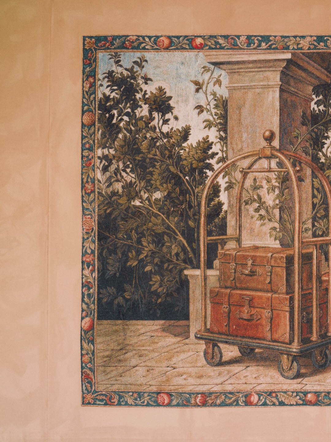 Στο κέντρο της εγκατάστασης βρίσκονται 12 μεγάλες ταπισερί, οι οποίες αφηγούνται σημαντικές στιγμές από την ιστορία του οίκου. Η αφήγηση ξεκινά από τον Guccio Gucci και την εμπειρία του στο Λονδίνο στα τέλη του 19ου αιώνα, όταν εργαζόταν σε ξενοδοχείο και παρατήρησε τη σημασία των ταξιδιωτικών αποσκευών για την ανερχόμενη τάξη των ταξιδιωτών. Αυτή η παρατήρηση αποτέλεσε τη βάση για την ίδρυση της Gucci στη Φλωρεντία το 1921, όπου άνοιξε το πρώτο εργαστήριο δερμάτινων ειδών.