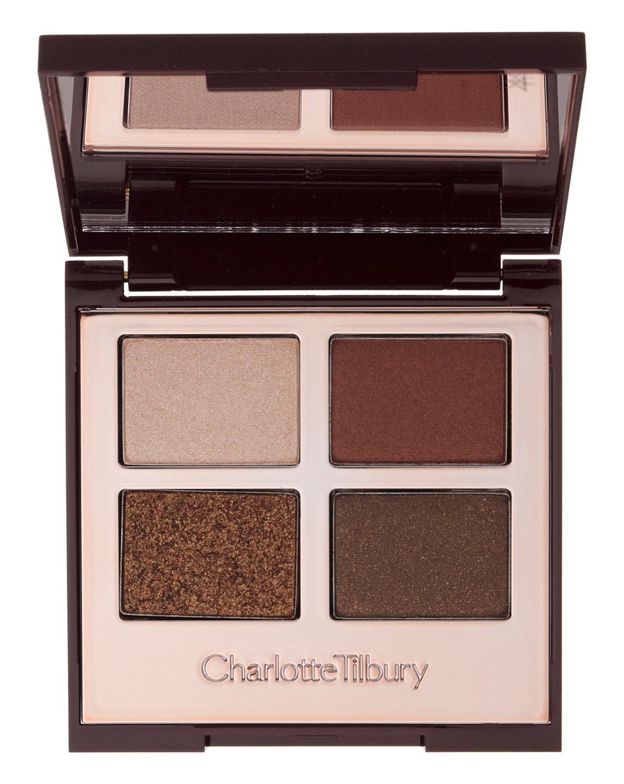 Μετά τα φρύδια, σειρά έχουν τα μάτια. Για τις βραδινές της εξόδους συνήθως προτιμά να τονίζει το βλέμμα της και να αφήνει τα χείλη φυσικά. Γι' αυτό χρησιμοποιεί μία παλέτα σκιών με ζεστές αποχρώσεις. Πρώτα απλώνει μία rosy shimmery σκιά σε όλο το βλέφαρο, μετά εφαρμόζει μία σε κόκκινους τόνους στην κόγχη και τέλος, τις κάνει blending μαζί με ένα πινέλο.