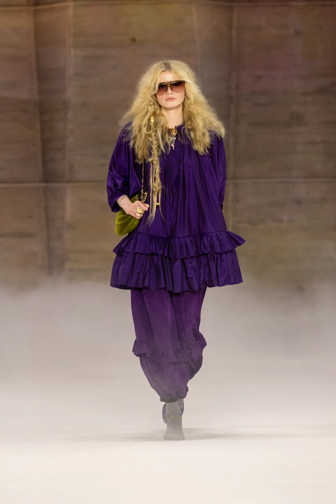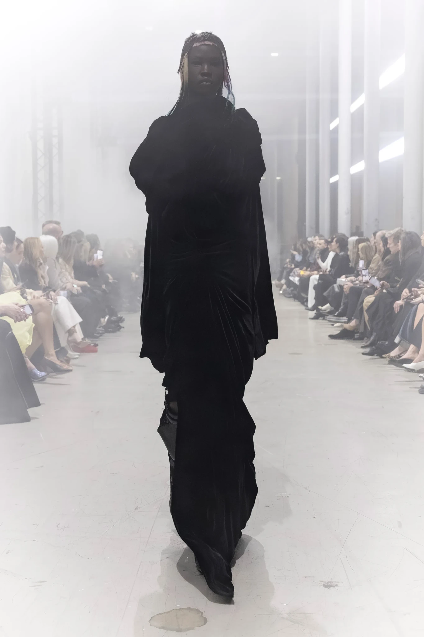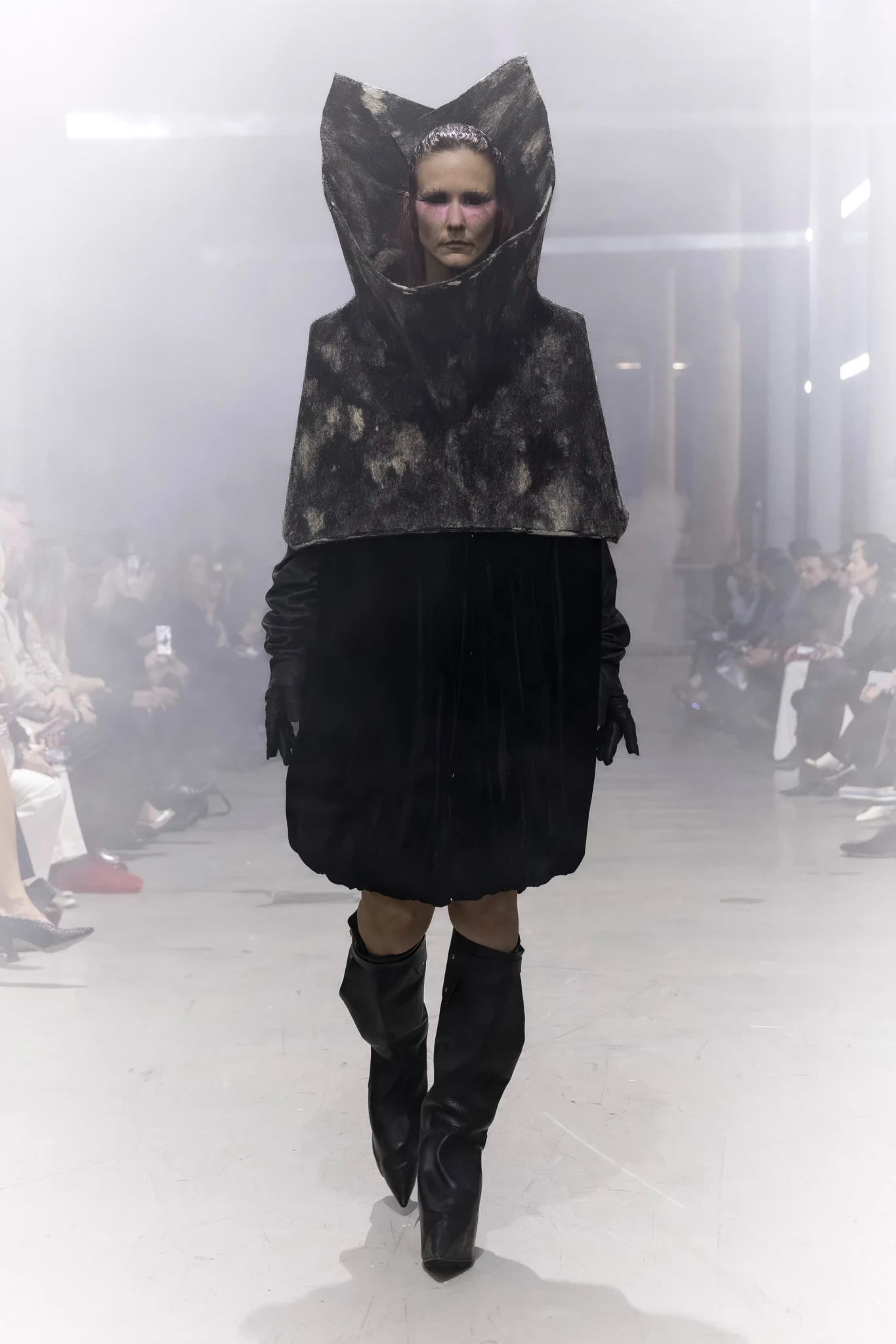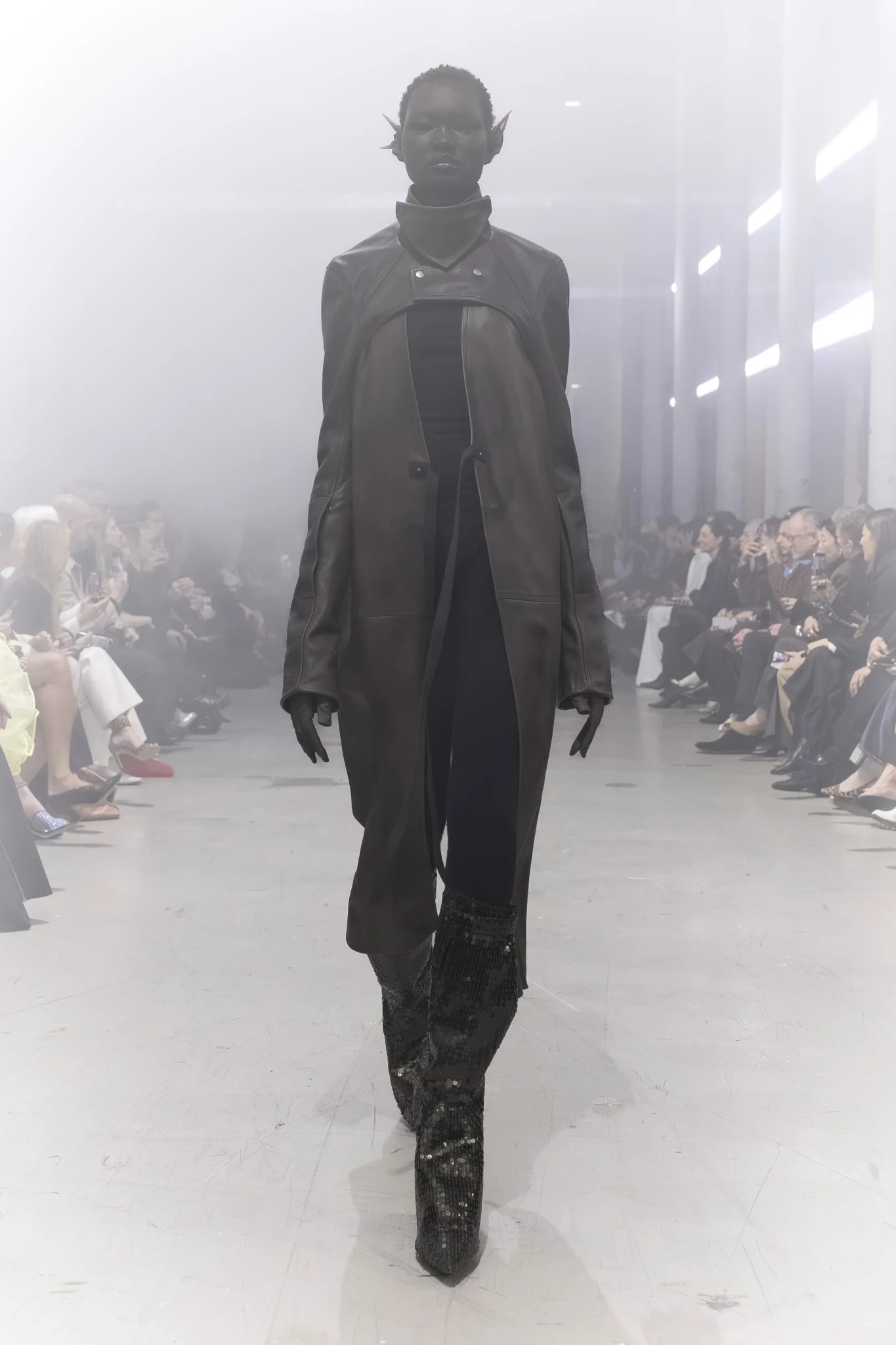 Η πασαρέλα μεταμορφώθηκε σε ένα σκηνικό που θύμιζε μια φυλή σύγχρονων πολεμιστριών, με looks που συνδύαζαν dramatic volumes, γήινες αποχρώσεις και έντονες υφές. Τα ρούχα αγκάλιασαν το σώμα με πιο αέρινες γραμμές αντί για αυστηρές σιλουέτες, ενώ τα χαρακτηριστικά ψηλοτάκουνα boots του σχεδιαστή κατάφεραν να αποκτήσουν νέες, πιο εντυπωσιακές αναλογίες.
