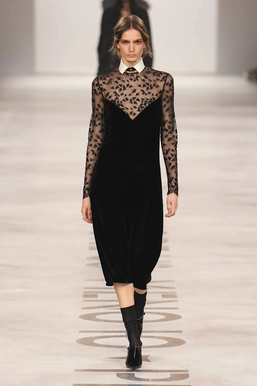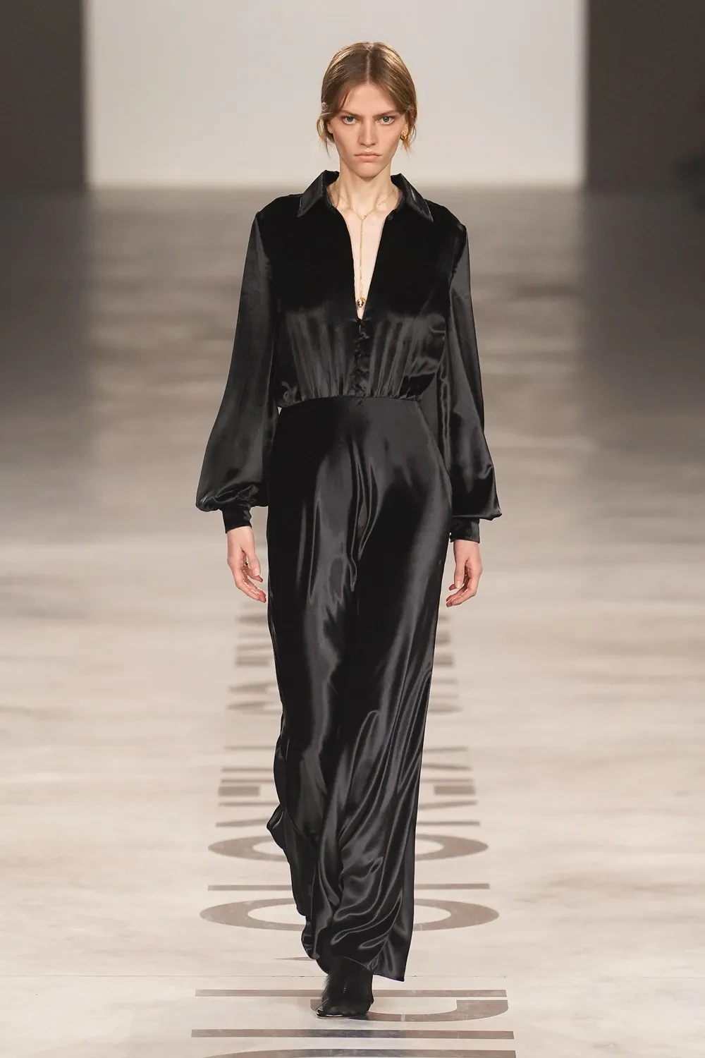Η νέα φθινοπωρινή συλλογή της ήταν ξεκάθαρο ότι είχε τη σχεδιαστική της ταυτότητα. Ουδέτερες αποχρώσεις που κυμαίνονταν ανάμεσα στο μαύρο, το λευκό και το μπεζ, σιλουέτες που αγκάλιαζαν το γυναικείο σώμα και αναδείκνυαν τη θηλυκότητα ήταν μερικά από τα χαρακτηριστικά στοιχεία. Υπήρξαν μερικές εκρήξεις χρωμάτων, όπως το κόκκινο και το κίτρινο, τα οποία χάρισαν έξτρα δυναμική στη συλλογή.