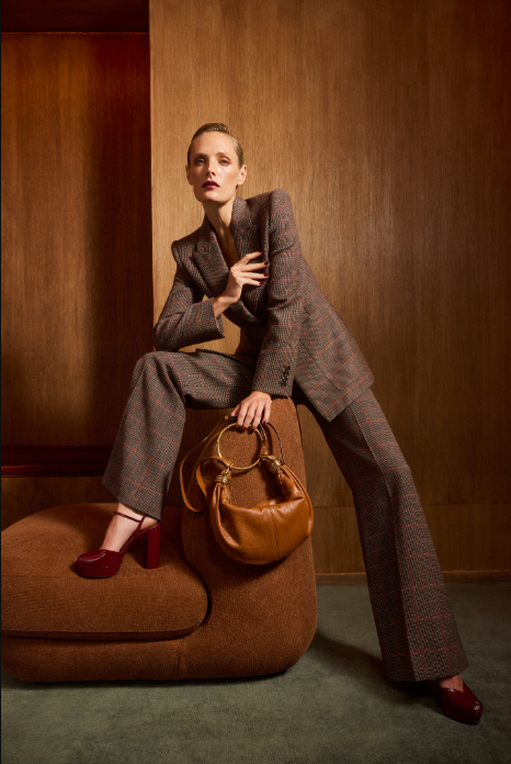 Η χρωματική παλέτα της καμπάνιας κινείται σε τόνους του μπεζ, του καφέ, του βουργουνδί αλλά και του κλασικού μαύρου, υπογραμμίζοντας τη φυσικότητα και την αρμονία που τη χαρακτηρίζει. Κάθε εικόνα μετατρέπεται σε μία ιστορία που δεν ειπώθηκε ποτέ αλλά μπορούμε να την αισθανθούμε. Πρόκειται για ένα ψίθυρο κομψότητας χωρίς να κρύβει μέσα του καμία υπερβολή.