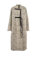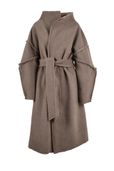Οι oversized δημιουργίες, είτε πρόκειται για μάλλινα παλτό είτε για soft-structure shearling jackets, θυμίζουν προστατευτικά κελύφη που περιβάλλουν το σώμα. Τα κομμάτια δείχνουν να «γεννιούνται» από την ίδια την ύλη τους. Μάλλινα υφάσματα και οργανικά textures που αποδομούν την ιδέα του κλασικού tailoring αποτελούν μερικά από τα βασικά στοιχεία της νέας collection. Η χαρακτηριστική καθαρότητα του ελληνικού brand είναι παρούσα, αλλά αυτή τη σεζόν ερμηνεύεται μέσα από μια πιο δυναμική, σχεδόν πρωτοποριακή ματιά.