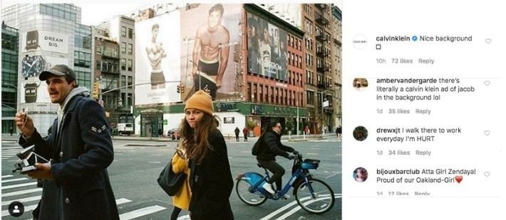 H Zendaya και ο αγαπημένος της Jacob Elordi έκαναν μία βόλτα στο Manhattan και έβγαλαν την πιο viral φωτογραφία της εβδομάδας μπροστά από ένα billboard με φωτογράφιση του sexy Jacob! Media και fans έκαναν repost χωρίς σταματημό την τυχαία αυτή στιγμή. Ακόμη και ο οίκος Calvin Klein δε μπόρεσε να αντισταθεί αφήνοντας το σχόλιο "ωραίο background"!