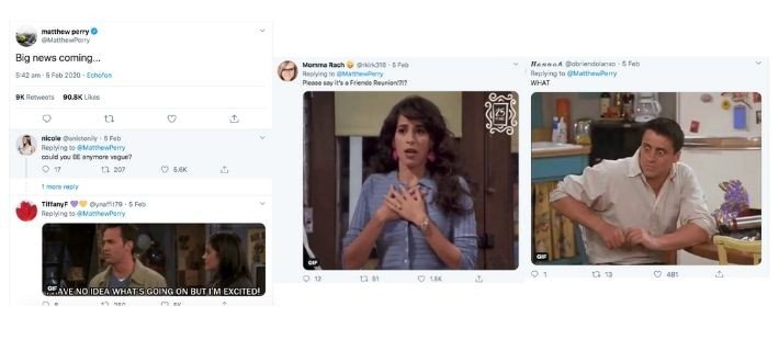 Ο Matthew Perry έριξε το Twitter με ένα κρυπτικό tweet μόλις τριών λέξεων! «Μεγάλα νέα έρχονται» έγραψε ο αγαπημένος σε όλους Chandler Bing και οι fans του ξετρελάθηκαν! Τα σενάρια για reunion του cast της διάσημης σειράς αναζωπυρώθηκαν και οι αντιδράσεις ποικίλουν! Ο ίδιος δεν απάντησε σε κανένα σχόλιο. Κρατήστε την ψυχραιμία σας όποια και να είναι τα σχέδια του ηθοποιού το μόνο σίγουρο είναι ότι θα ανακαλυφθούν σύντομα!