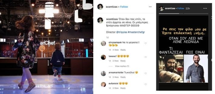 Ο Σωτήρης Κοντιζάς μας έκλεψε την καρδιά με ένα post των δύο παιδιών του στο set του δημοφιλούς διαγωνισμού μαγειρικής! Όπως λέει και ο ίδιος χιουμοριστικά οι μπόμπιρες ξεπόρτισαν και το instagram τους λάτρεψε με περίπου 60,000 likes σε μόλις μία ημέρα. Με χιούμορ αντιμετώπισε και στα stories του ένα από τα memes που κυκλοφορούν στα social media για τον Λεωνίδα Κουτσόπουλο συνεργάτη και φίλο του! Μπορεί να είμαι προκατειλημμένη αλλά μάλλον είναι ο πιο γοητευτικός κριτής του Master Chef!
