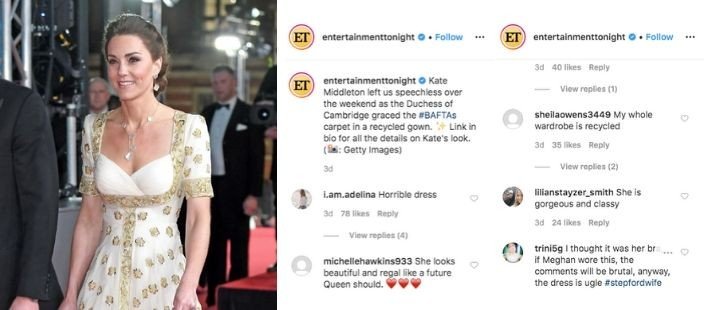H Kate Midlleton εμφανίστηκε στο κόκκινο χαλί των BAFTA φορόντας για δεύτερη φορά μία εντυπωσιακή τουαλέτα από τον αγαπημένο της βρετανικό οίκο Alexander McQueen! Ενώ τα media της έδωσαν thumbs up για την οικολογική της συνείδηση οι χρήστες των social media είχαν τουλάχιστον ανάμεικτα συναισθήματα με κάποιους να σχολιάζουν ότι η επιλογή της ήταν ατυχής και ότι εάν είχε φορέσει την ίδια δημιουργία η Meghan Markle τα σχόλια θα ήταν επιεικώς αρνητικά!