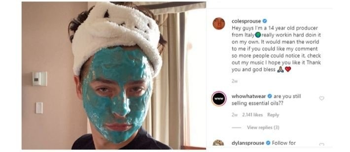 Ο πρωταγωνιστής της επιτυχημένης σειράς Riverdale ανέβασε την πιο viral selfie της εβδομάδας! Με μία μάσκα προσώπου κι ένα χιουμοριστικό σχόλιο στο οποίο δηλώνει ότι είναι ένας 14χρονος Ιταλός παραγωγός ταινιών που προσπαθεί να τα καταφέρει μόνος του στον δύσκολο κόσμο του κινηματογράφου και παρακαλεί, όπως τόσοι στο Instagram, να κάνουν like στο comment του έτσι ώστε να αποκτήσει περισσότερους followers. Το post κέρδισε την καρδιά των followers του και πήρε περισσότερα από 4 εκατομμύρια likes ενώ ενέπνευσε άπειρα memes και αστεία σχόλια, όπως αυτό του fashion account who what where όπου ρωτούν τον ηθοποιό εάν ακόμη πουλάει αιθέρια έλαια!