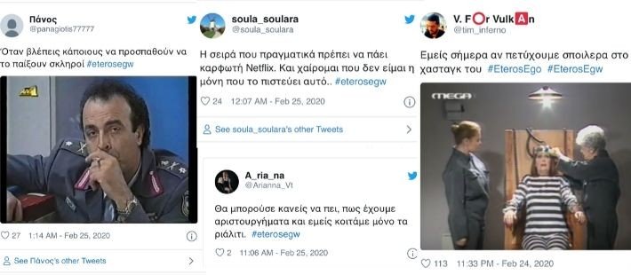 Αποθέωσαν οι χρήστες τη νέα σειρά του Star Έτερος Εγώ! Βασισμένη στην ομώνυμη ταινία, η mini σειρά 8 επεισοδίων έκανε πρεμιέρα τη Δευτέρα και το ελληνικό Twitter ξέχασε Άγριες Μέλισσες, Κόκκινο Ποτάμι, Master Chef και συντονίστηκε στο συγκλονιστικό αστυνομικό θρίλερ με κάποιους χρήστες να το συγκρίνουν και με σειρές του εξωτερικού. Σήμερα μπορείτε να κάνετε catch up και να δείτε τα τελευταία 2 επεισόδια live!