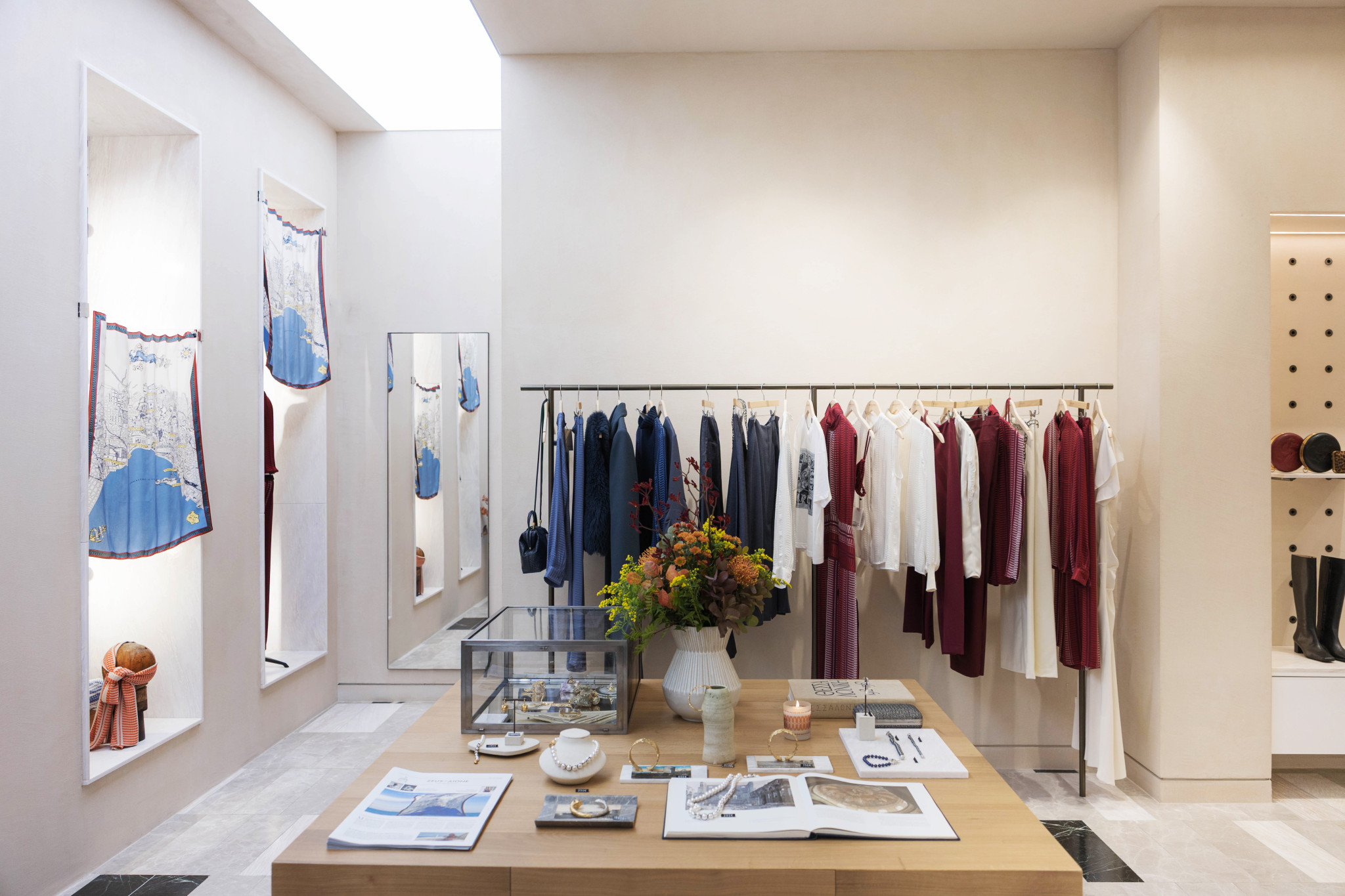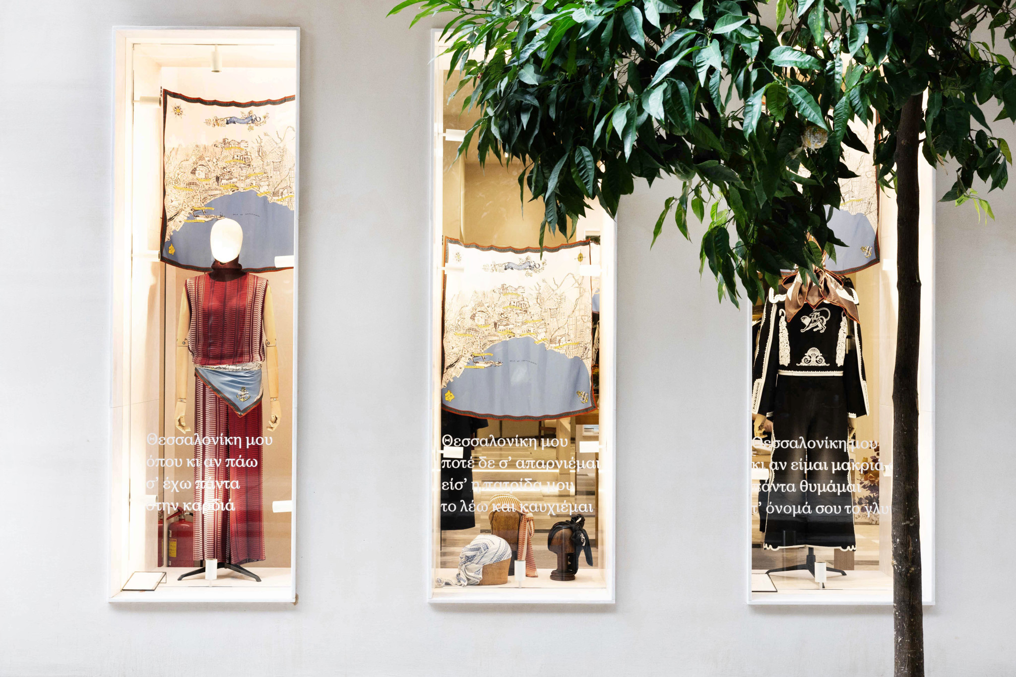 Στο εσωτερικό, οι επισκέπτες ανακαλύπτουν τις τρέχουσες συλλογές ready-to-wear, καθώς και μια ευρεία γκάμα από αξεσουάρ, κοσμήματα, δερμάτινα είδη, μεταξωτά μαντήλια και αντικείμενα homeware από τη σειρά Philoxenia, εμπνευσμένα από την έννοια της φιλοξενίας. Είναι ένας χώρος όπου η μόδα γίνεται τρόπος ζωής και έκφρασης ταυτότητας. Είναι ένας χώρος αυθεντικός, ήσυχος και βαθιά ελληνικός.