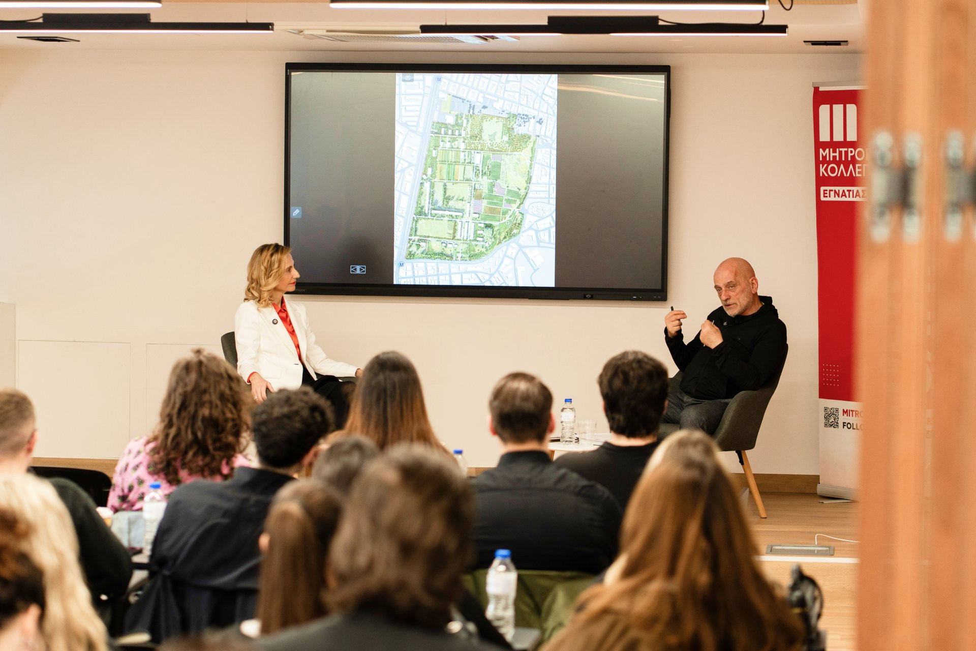 Πιο συγκεκριμένα, η εναρκτήρια ομιλία έλαβε τόπο στο κατάμεστο αμφιθέατρο του νέου campus του Κολλεγίου στην οδό Εγνατίας 46, στο κέντρο της Θεσσαλονίκης. Πλήθος φοιτητών και συμμετεχόντων δήλωσαν το «παρών», επιβεβαιώνοντας το έντονο ενδιαφέρον της κοινωνίας για τον σύγχρονο αστικό σχεδιασμό και τις παρεμβάσεις στον δημόσιο χώρο που επαναπροσδιορίζουν τον χαρακτήρα και την ταυτότητα της πόλης.