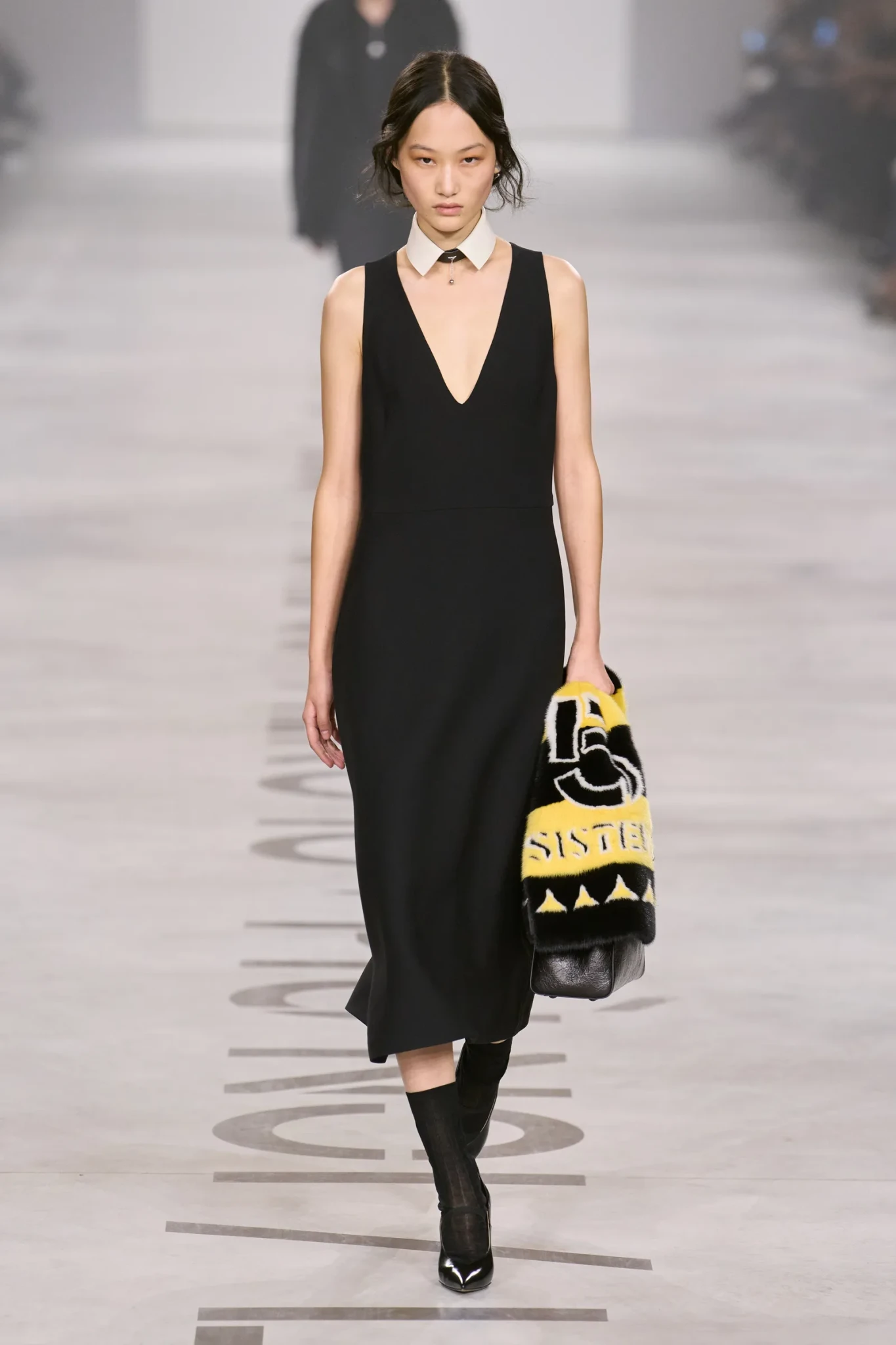 Τα μοντέλα περπάτησαν στην πασαρέλα με γιακάδες τοποθετημένους γύρω από τον λαιμό – αποκομμένους από οποιοδήποτε ρούχο και λειτουργώντας ως αυτόνομα αξεσουάρ – πιθανότατα ως αναφορά στον Karl Lagerfeld. Εξίσου δελεαστική ήταν η limited edition σειρά κοσμημάτων, η οποία δημιουργήθηκε σε συνεργασία με το αρχείο της καλλιτέχνιδας Mirella Bentivoglio. Στα παπούτσια, αν και πολλοί περίμεναν gladiator sandals – σήμα κατατεθέν της Chiuri – εκείνη επέλεξε μυτερές γόβες, εντυπωσιακές μπότες και open-toe platforms σε κλασικό μαύρο και δυναμικά animal prints.