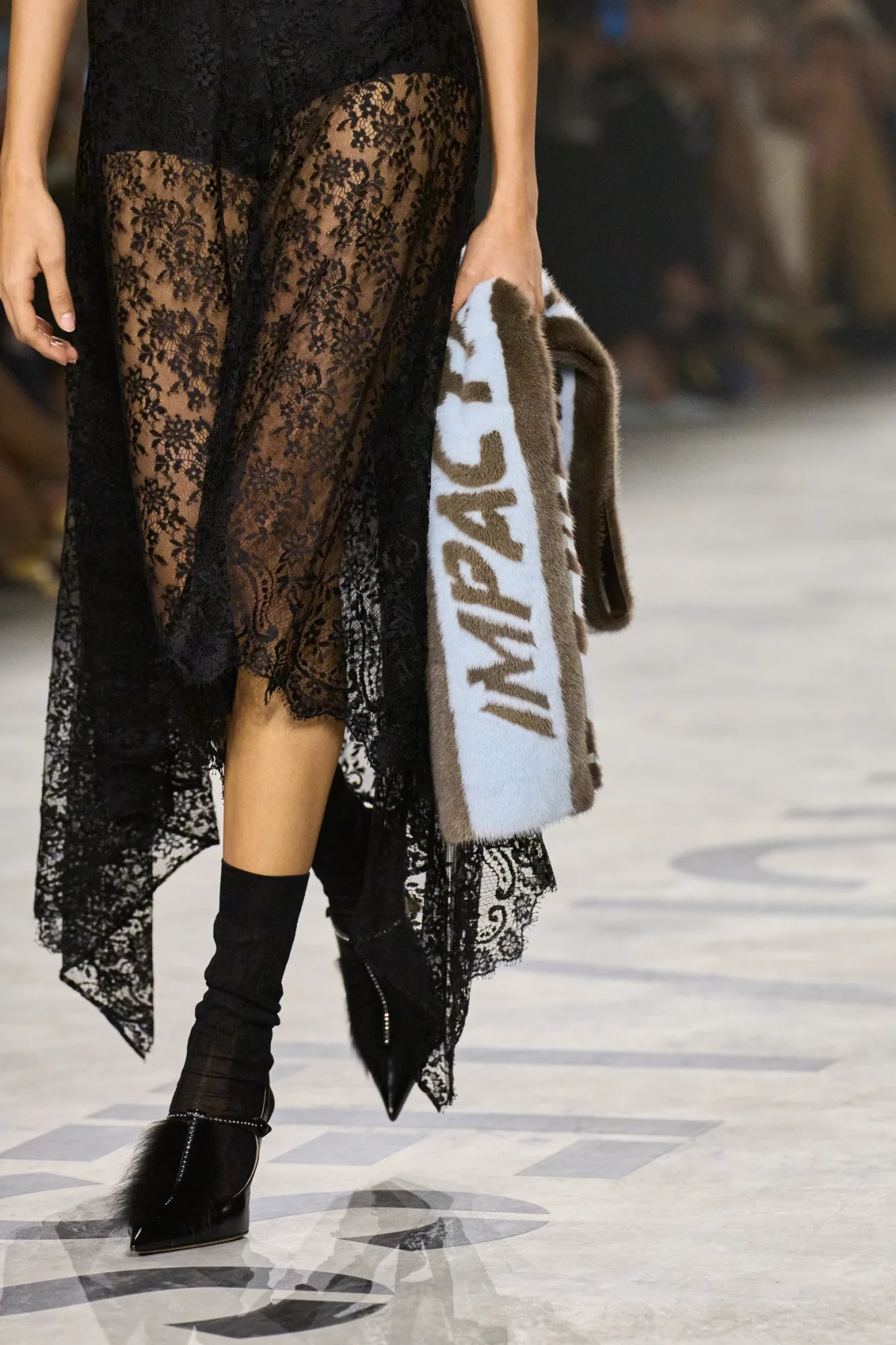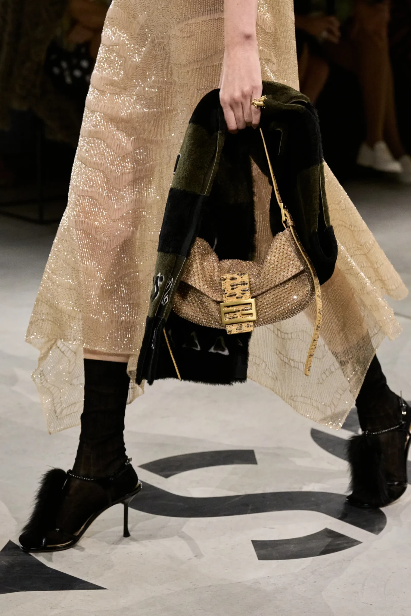 Σε περίπτωση που δεν το γνωρίζετε, το διπλό σύμβολο του οίκου, το F συμβολίζει το "fun furs" και η Maria Grazia Chiuri δεν έχασε χρόνο να μας το υπενθυμίσει στην πιο μοντέρνα και σύγχρονη εκδοχή του. Τις είδαμε παντού. Σε εντυπωσιακά jackets, ως τελείωμα σε γιλέκα αλλά και ως αντίθεση σε λιτές σιλουέτες. Σε συνέντευξή της πριν το ντεμπούτο, δήλωσε: «Όλοι οι πελάτες μας, ακόμη κι αν έχουν γούνα που δεν έχει κατασκευαστεί από τη Fendi, μπορούν να επιστρέψουν σε εμάς και θα δουλέψουμε πάνω σε αυτή». Άλλωστε, ο ιταλικός οίκος ξεκίνησε ως ατελιέ γούνας, αλλάζοντας ριζικά τη θέση του υλικού στο fashion τοπίο.
