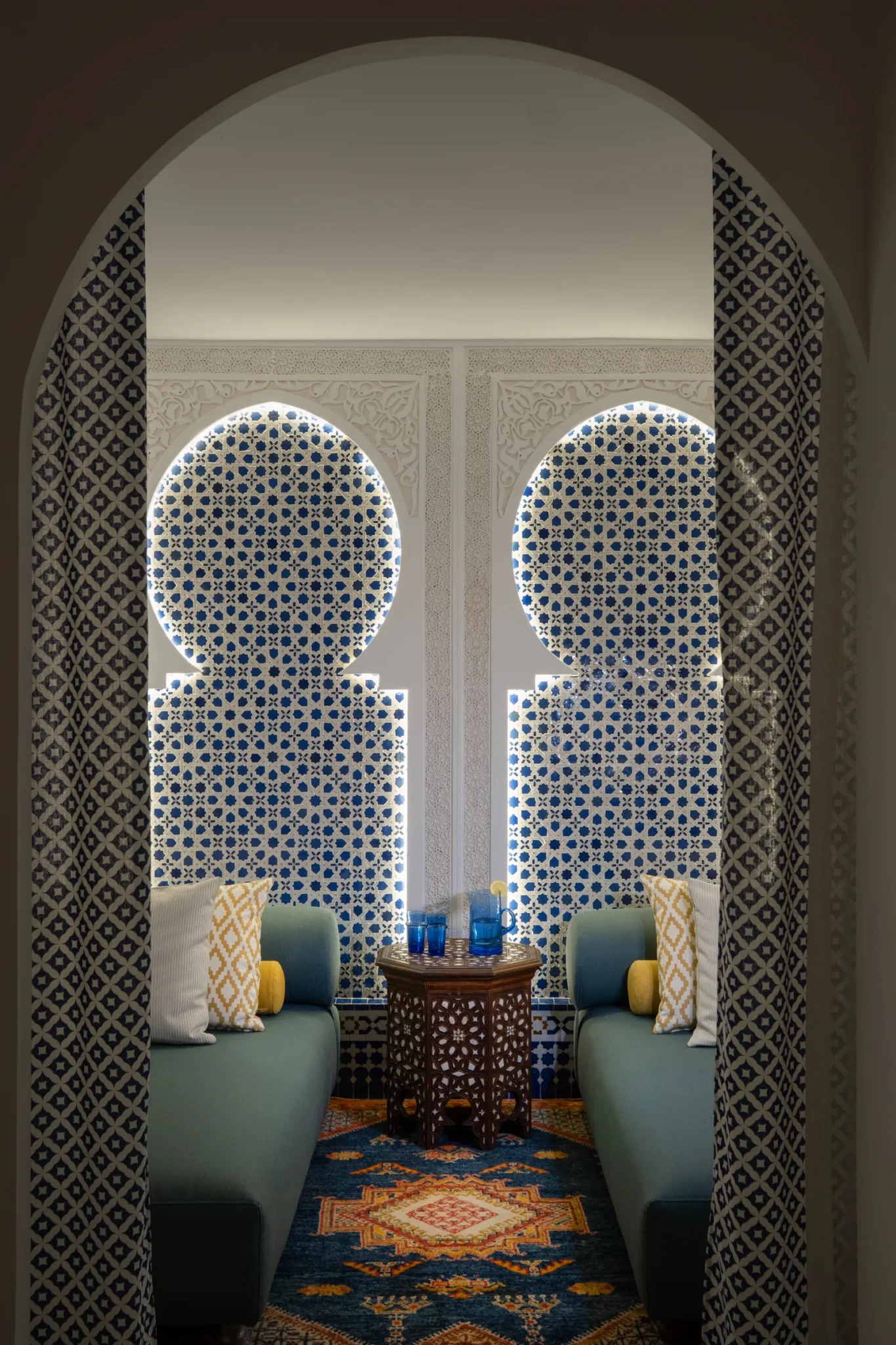 Η βίλα Dar Mira, σχεδιασμένη από τον Mustafa Khamash και το στούντιό του Kart Group, αναδεικνύει την πλούσια μαροκινή παράδοση μέσα από μια σύγχρονη προσέγγιση. Κάθε λεπτομέρεια -από τα χειροποίητα πλακίδια και τα υφάσματα μέχρι το ξύλο και την πέτρα- φέρει τη σφραγίδα των τοπικών τεχνιτών. Οι ιδιοκτήτες ήθελαν ένα σπίτι πραγματικά αυθεντικό, φτιαγμένο από υλικά που θα ωριμάζουν με τον χρόνο και θα διατηρούν χαρακτήρα, και όχι μια τυπική πολυτελή έπαυλη. Παράλληλα, η κατοικία θα έπρεπε να εξυπηρετεί δύο τρόπους ζωής: μεγάλες, ζωντανές συγκεντρώσεις σε έναν χώρο και ήσυχες, ιδιωτικές στιγμές σε άλλον. Κάθε επιλογή, από την τοποθέτηση των δωματίων μέχρι την επιλογή των υλικών, έγινε με γνώμονα αυτήν την ισορροπία ανάμεσα στη ζωντάνια και την ηρεμία, ώστε η Dar Mira να μπορεί να λειτουργεί ταυτόχρονα σαν σπίτι για καθημερινή ζωή και σαν χώρος υποδοχής και κοινωνικών εκδηλώσεων.