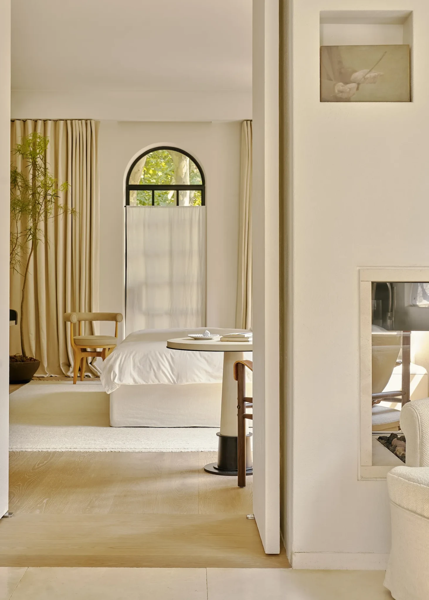 Ο διάλογος ανάμεσα στο μέσα και στο έξω επιτυγχάνεται μέσα από μεγάλες υαλοστάσεις από το δάπεδο ως την οροφή, που αφήνουν τον ήλιο και το πράσινο να διαχέονται ελεύθερα. Όμως ο Wu Bin δεν περιορίζεται σε μια απλή «εισροή» φωτός αλλά οργανώνει ολόκληρη τη διάταξη των δωματίων, των διαδρομών και των οπτικών γωνιών με απόλυτη ακρίβεια. Το αποτέλεσμα είναι μια αίσθηση «διαπερατότητας» που θυμίζει τη ρευστότητα των παραδοσιακών ανατολικών κήπων.