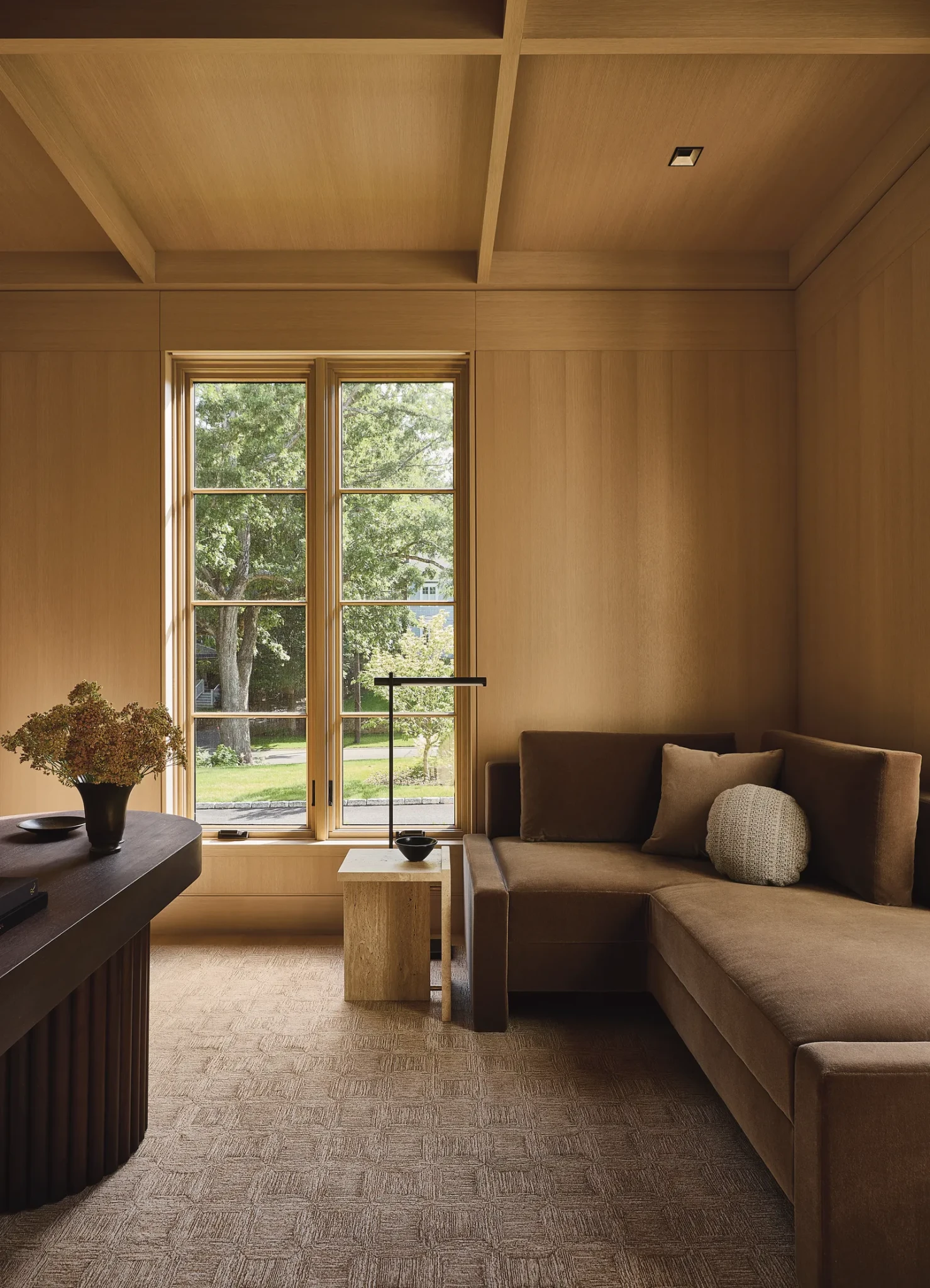 Πρόκειται για μια νεόδμητη κατοικία αποτέλεσμα της συνεργασίας του γραφείου Tharon Anderson Design από τη Νέα Υόρκη και των Catalano Architects από τη Βοστώνη. Σχεδιάστηκε για μια πενταμελή οικογένεια με έντονο καθημερινό ρυθμό ζωής, όπου η αισθητική καλείται να συνυπάρξει αρμονικά με τη λειτουργικότητα. Ο βασικός στόχος ήταν η δημιουργία ενός σπιτιού εκλεπτυσμένου αλλά super cozy, ικανού να φιλοξενήσει τόσο επίσημες συγκεντρώσεις όσο και χαλαρές οικογενειακές στιγμές.