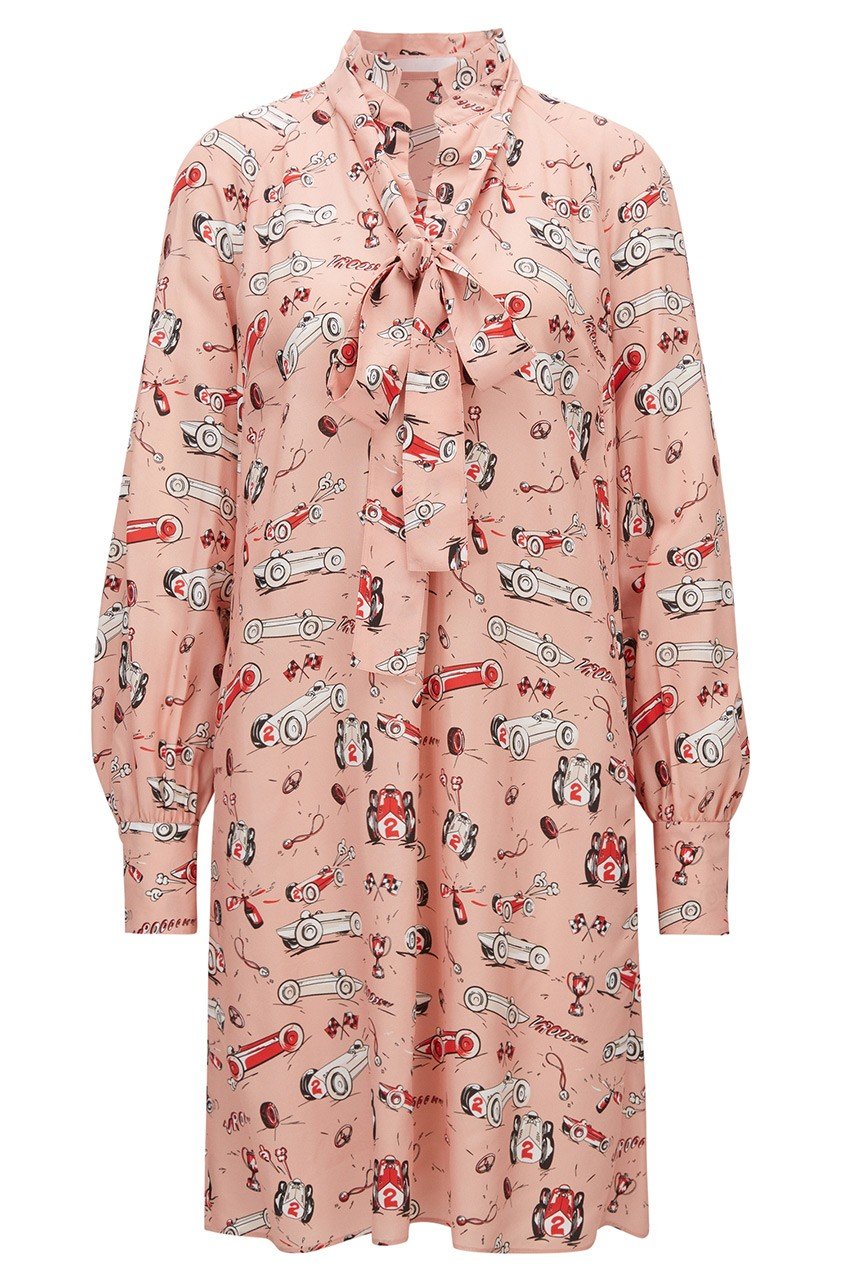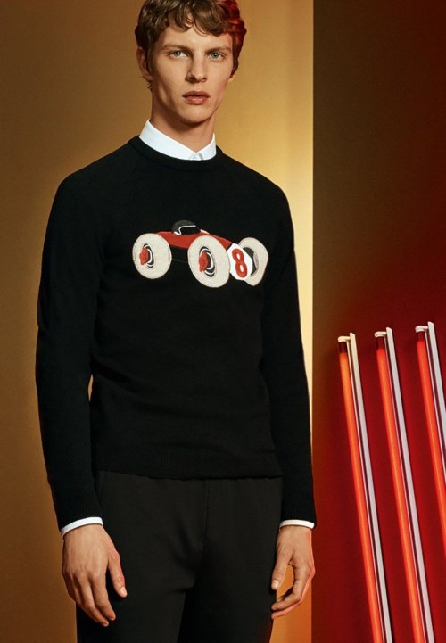 Ένα σχέδιο που προέρχεται από τα μοντέλα της Playforever, το μοτίβο του αυτοκινήτου, αποτελεί κεντρικό θέμα της εορταστικής σειράς, είτε σχεδιασμένο σε μεταξωτό γυναικείο φόρεμα, είτε κεντημένο στο πίσω μέρος ενός bomber jacket. Το παιχνιδιάρικο αυτό σχέδιο συνεχίζεται σε όλη τη συλλογή των αξεσουάρ, εφαρμοσμένο σε τσάντες, μικρά δερμάτινα είδη, κλειδοθήκες, θήκες τηλεφώνων, καθώς και σε ανδρικά και γυναικεία sneakers. Tα ανδρικά κομμάτια είναι εμπνευσμένα από τα style icons των 70’s και το Studio 54. Τα tailored tuxedos δημιουργούνται από σατέν, πολυτελές βελούδο και υφαντό μαλλί, με φαρδιά πέτα και contrast λεπτομέρειες. Kλασικά κομμάτια που αναδιατυπώνονται σε ιδιαίτερα σχέδια, άψογα κομμένα, με κομψό φινίρισμα. Η γυναικεία συλλογή "αγκαλιάζει" τα έντονα prints και τις θηλυκές ρετρό σιλουέτες. Μεσάτα φορέματα και κομψές μπλούζες με λεπτομέρειες από φιόγκους σε απαλό ροζ συνδυάζονται με oversized πλεκτά και biker jackets για ένα cool, μοντέρνο σύνολο. Η αίγλη μιας άλλης εποχής αποτυπωμένη με σύγχρονη ματιά και το ξέγνοιαστο στιλ επικρατούν σε αυτή τη νέα συλλογή με την υπογραφή του creative director της Boss, Jason Wu, που θα σας εξασφαλίζει μοναδικές εμφανίσεις.