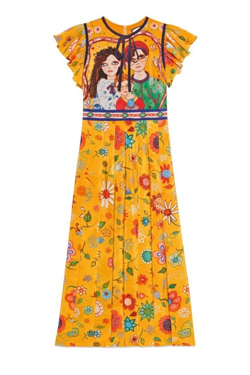 Η collection αποτελείται από 40 Ready-to-Wear κομμάτια που έχει σχεδιάσει η Helen Downie, σε συνεργασία με τον Alessandro Michele. Πρόκειται για μία συλλογή που τα έχει όλα: πουκάμισα, πουλόβερ, φορέματα, φούστες, μεταξωτά φουλάρια και αξεσουάρ. Τα έντονα χρώματα, τα floral και τα γεωμετρικά prints κυριαρχούν ενώ, επίσης, σε πολλά σχέδια απεικονίζονται πορτραίτα της εικαστικού.