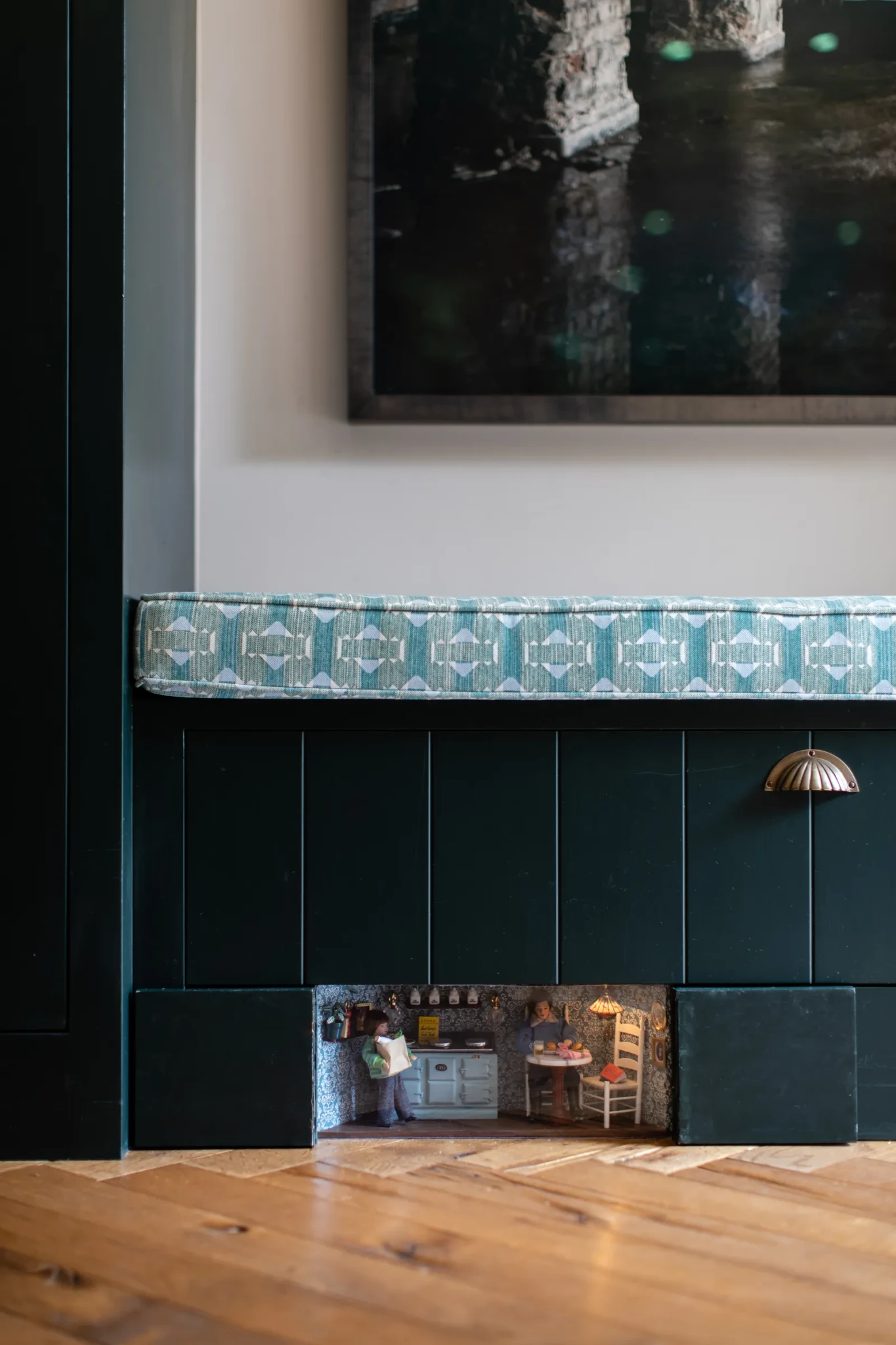 Αυτά τα «τρυπάκια» φιλοξενούν μινιατούρες επίπλων, φωτιστικά και φιγούρες, προσκαλώντας τα παιδιά σε έναν μυστικό κόσμο γεμάτο φαντασία, όπου οι ενήλικες ανακαλύπτουν μικρές, γλυκές εκπλήξεις σε κάθε γωνιά.