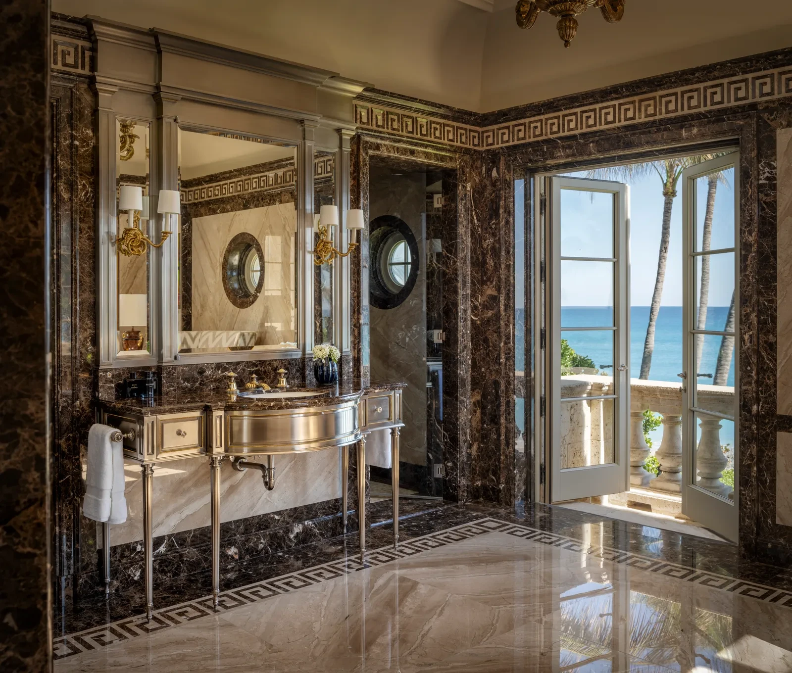 Η Pietra Mare ξεχωρίζει ως μια βίλα στη Φλόριντα με έντονη αναγεννησιακή επιρροή, μόλις λίγα μέτρα από την ιστορική κατοικία Mar-a-Lago του Donald Trump. Από την πρώτη στιγμή, οι επισκέπτες μαγεύονται από τις κλασικές αναλογίες και τις λεπτομερείς διακοσμήσεις, ενώ η promenade με θέα στον Ατλαντικό προσφέρει μια αίσθηση ελευθερίας και εκλεπτυσμένης πολυτέλειας. Η βίλα συνδυάζει διαχρονική κομψότητα με σύγχρονες ανέσεις, δημιουργώντας έναν χώρο που σέβεται την ιστορία του αλλά ταυτόχρονα ανταποκρίνεται στις ανάγκες μιας σύγχρονης οικογένειας.