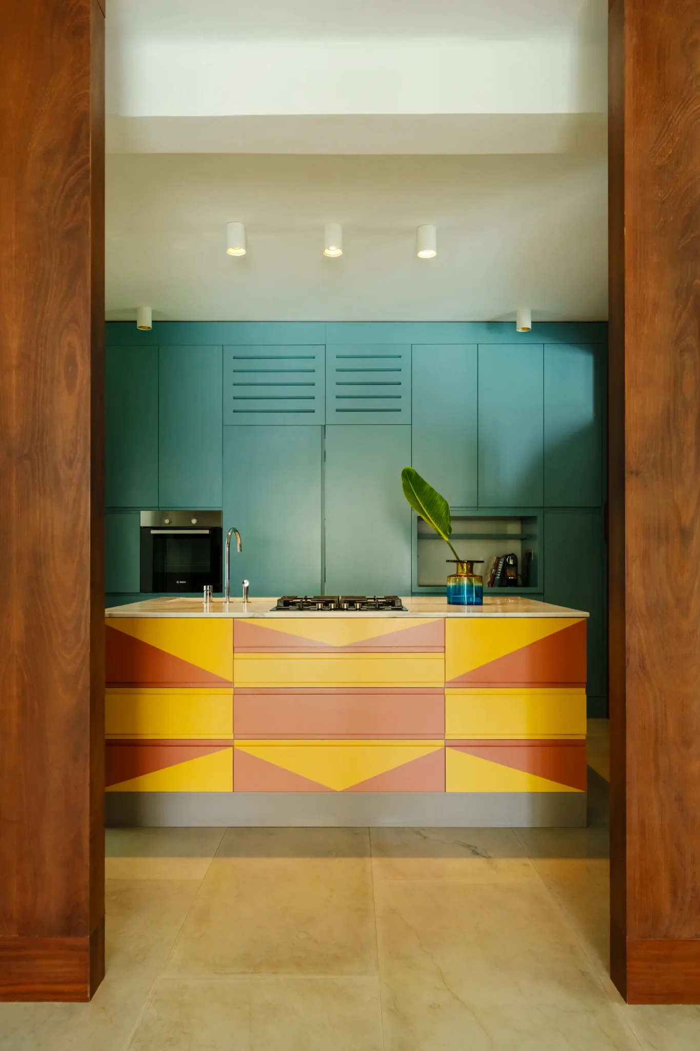 Μέσα στην κατοικία, τα στοιχεία κατασκευής λειτουργούν σαν κομμάτια design. Οι υπάρχουσες κολόνες μετατράπηκαν σε λειτουργικά διαχωριστικά, αποθηκευτικούς χώρους ή αρχιτεκτονικά σημεία ενδιαφέροντος.